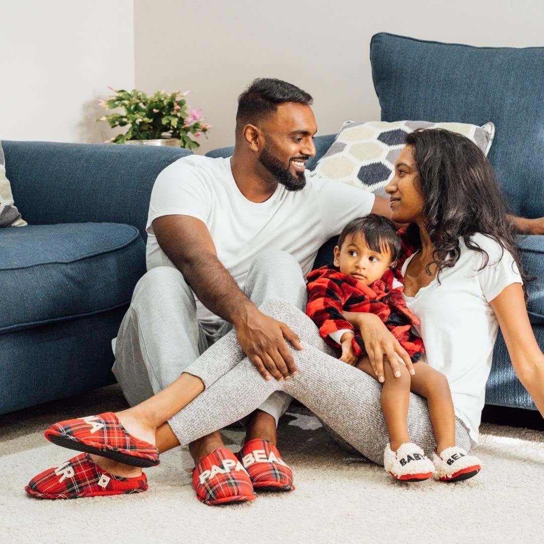 Dearfoams Baby & Kids’ Bear Matching Family Slipper Christmas Gifts(Red Tartan Plaid)