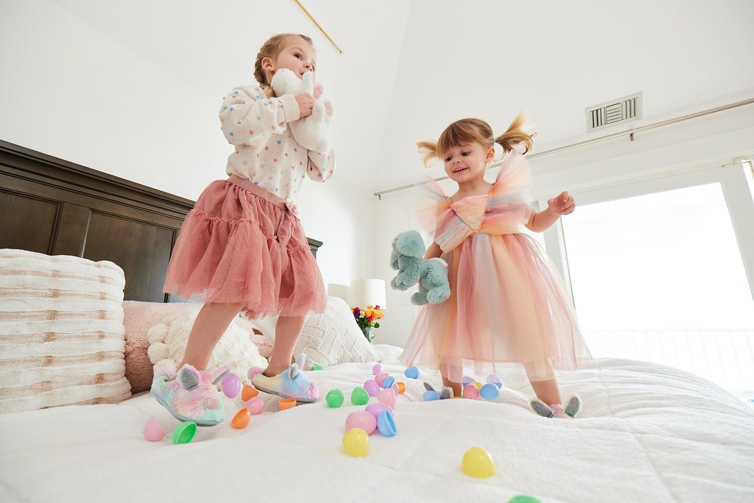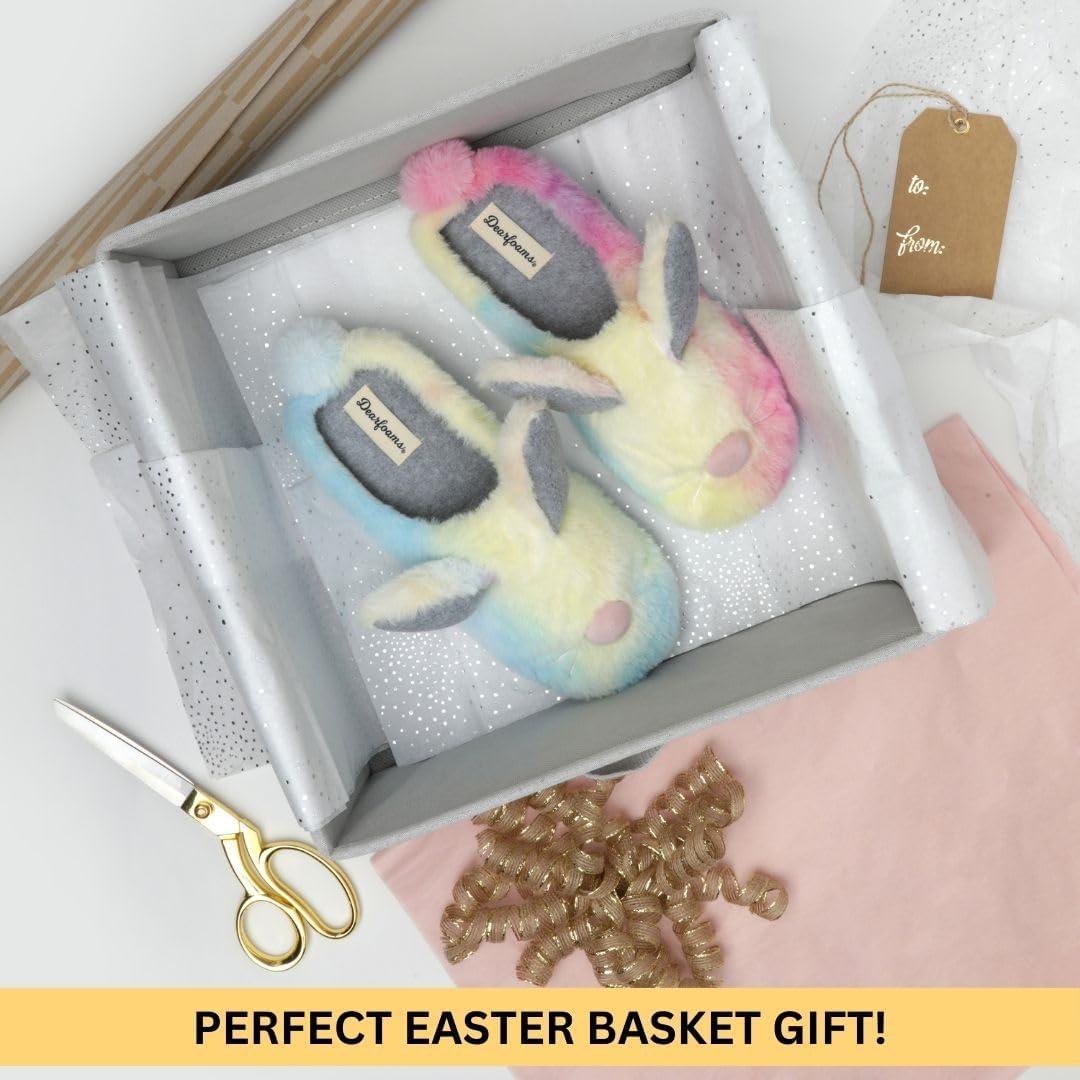 Dearfoams Easter Basket Stuffers Gifts for Kids Family Matching Fuzzy Bunny Slippers(Kids Bunny)