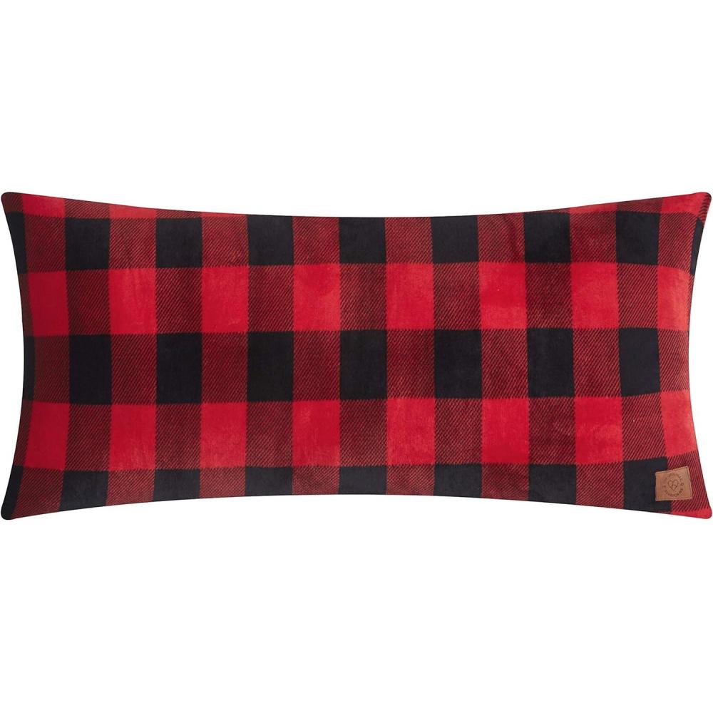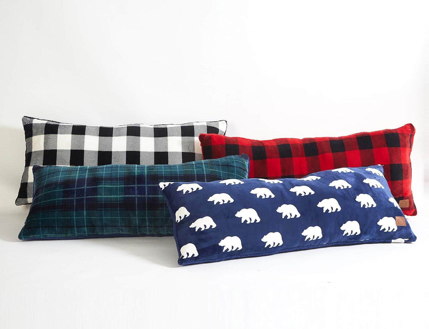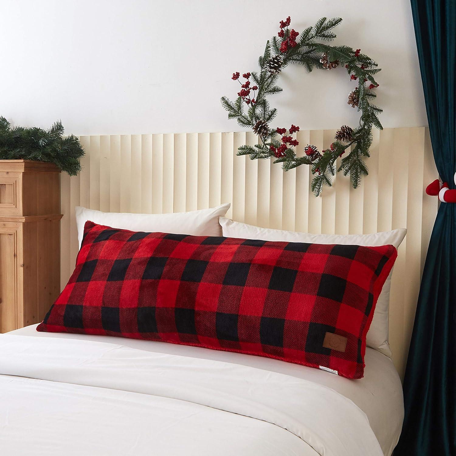 Dearfoams Grey and White Check Plaid Full Body Pillow,Royal Plush with Sherpa Reverse Fabric,48″x20″ Long Pillow(Red and Black)