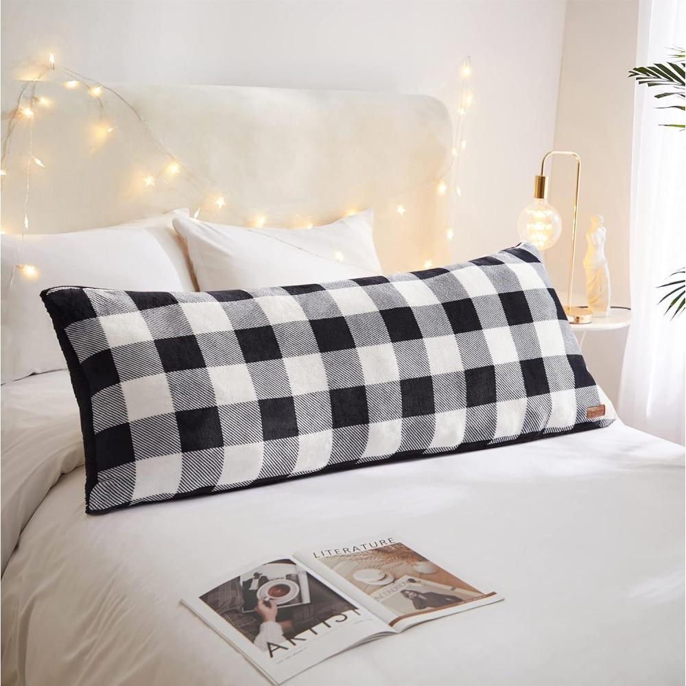 Dearfoams Grey and White Check Plaid Full Body Pillow,Royal Plush with Sherpa Reverse Fabric,48″x20″ Long Pillow(White and Black)