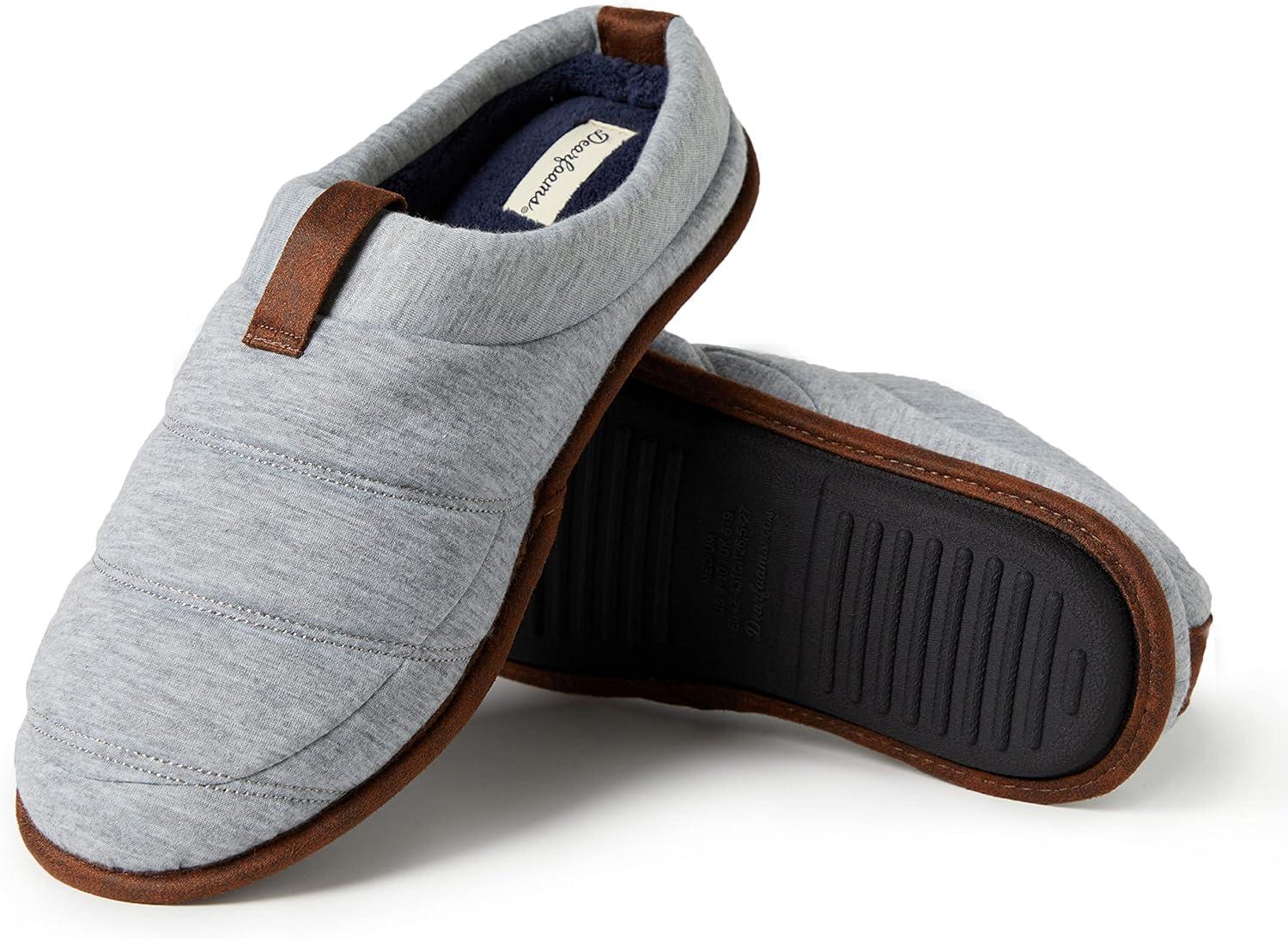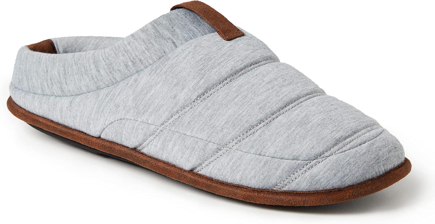 Dearfoams Men’s Ashton Quilted Memory Foam Jersey Clog Slipper(Light Heather Grey)