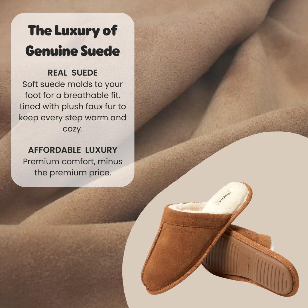 Dearfoams Men’s Bradford Genuine Suede House Shoe Scuff Slipper(Chestnut)