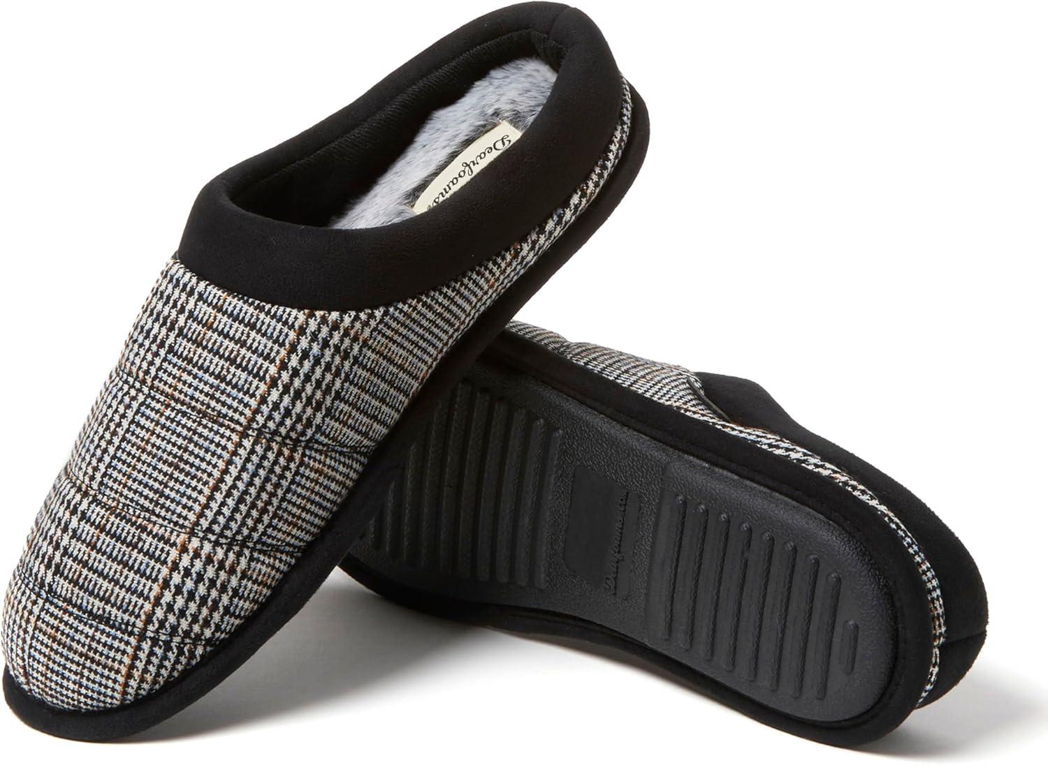 Dearfoams mens Breathable Memory Foam Asher Clog House Shoe(Black Fairisle)