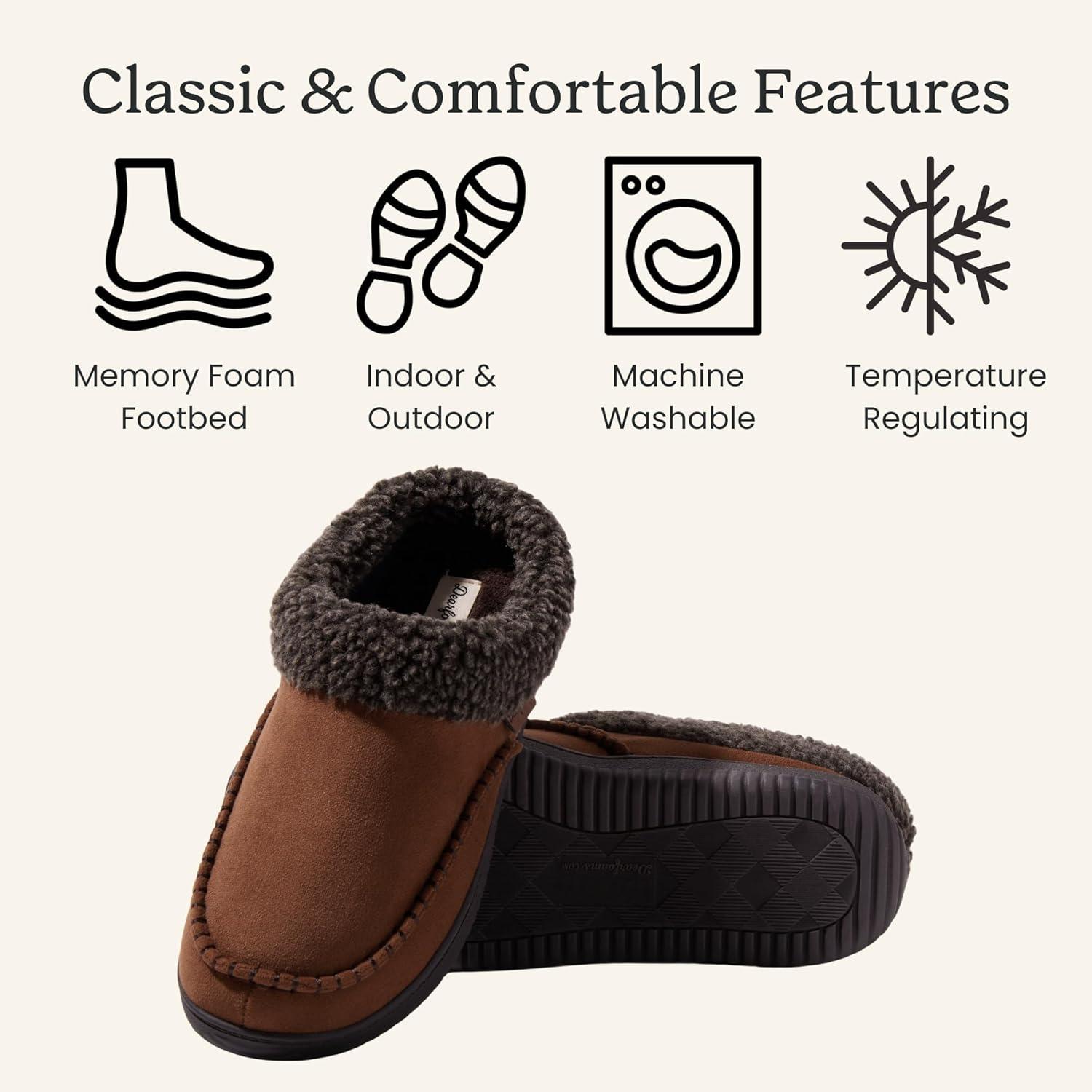 Dearfoams mens Breathable Memory Foam Slip on Marshall Indoor House Shoe Moccasin Slipper(Coffee)