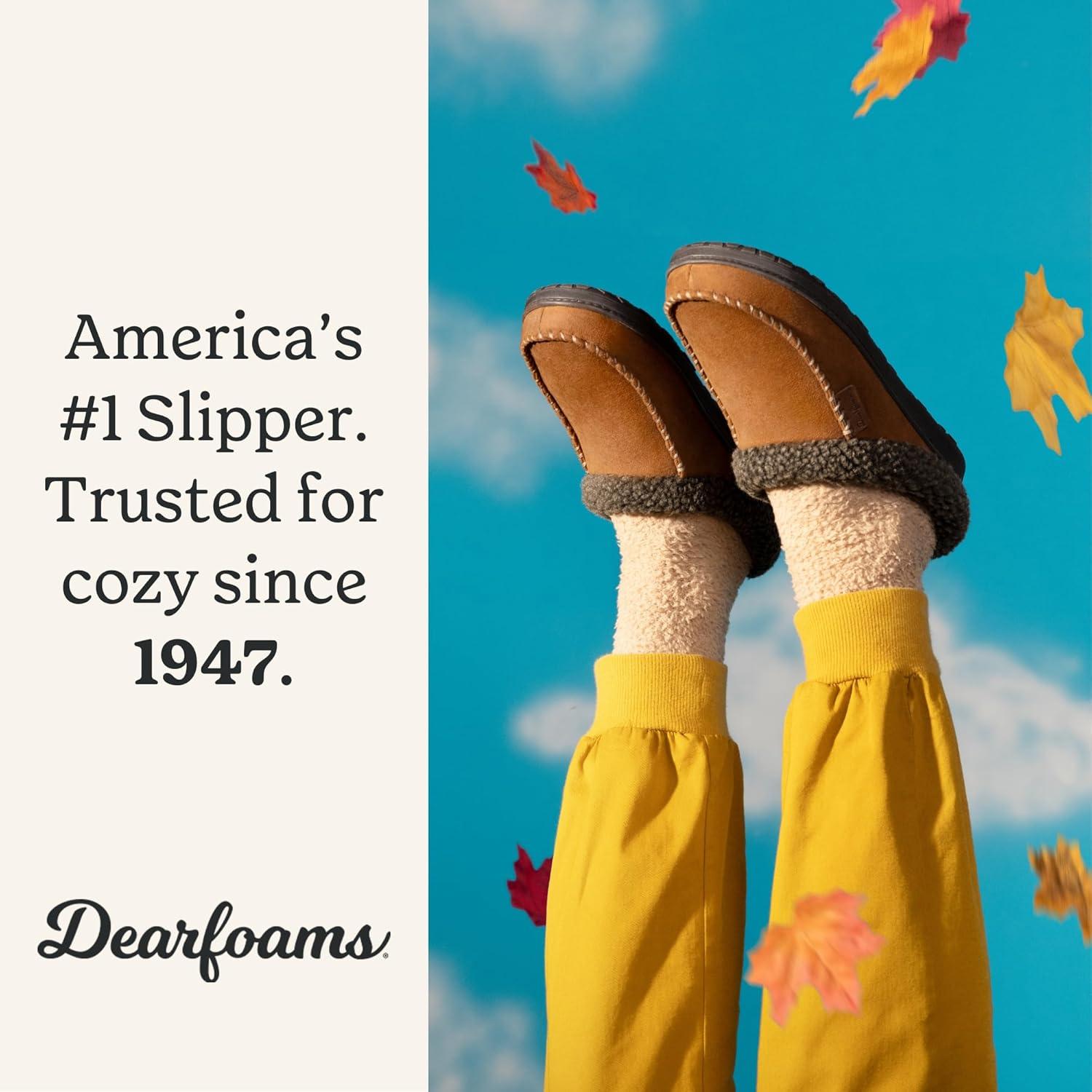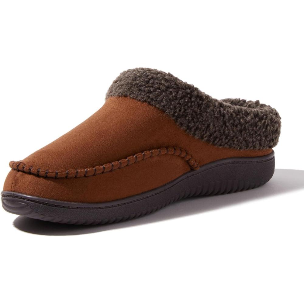 Dearfoams mens Breathable Memory Foam Slip on Marshall Indoor House Shoe Moccasin Slipper(Chestnut)