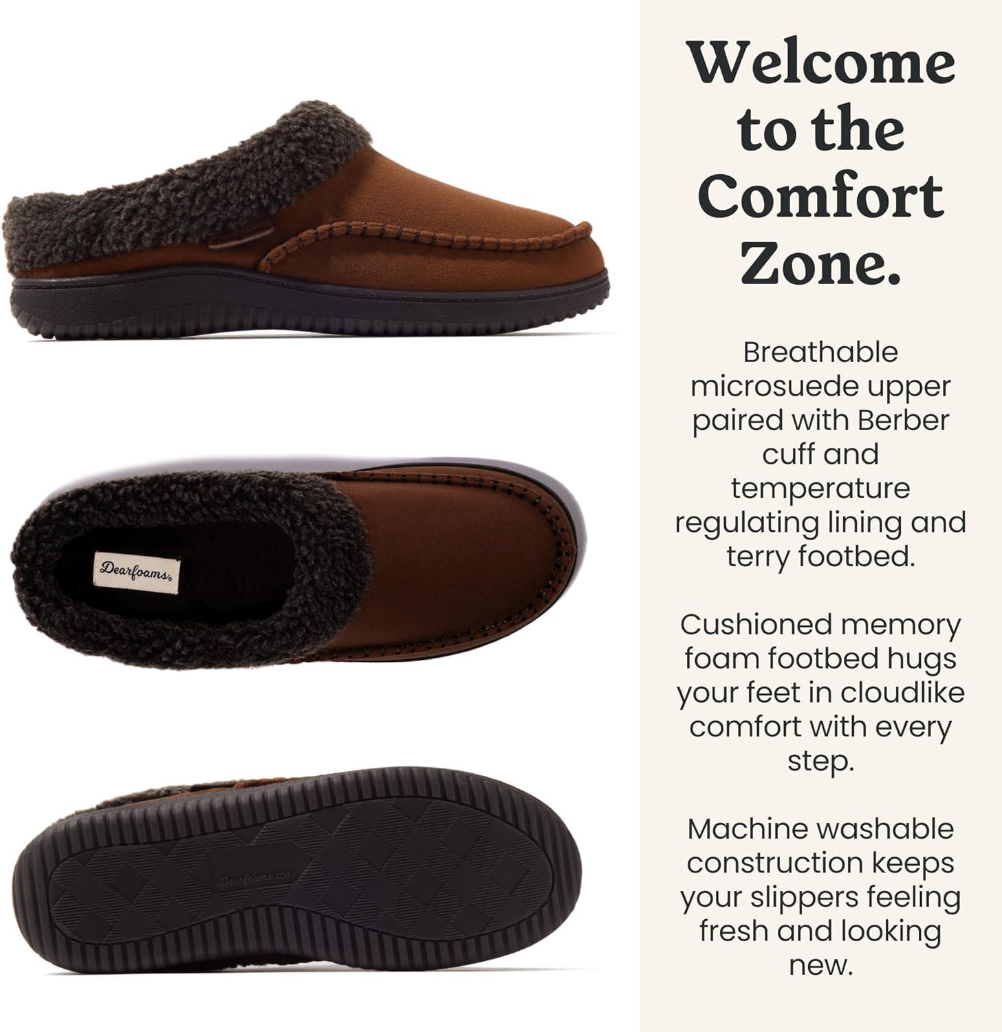 imageDearfoams mens Breathable Memory Foam Slip on Marshall Indoor House Shoe Moccasin SlipperCoffee