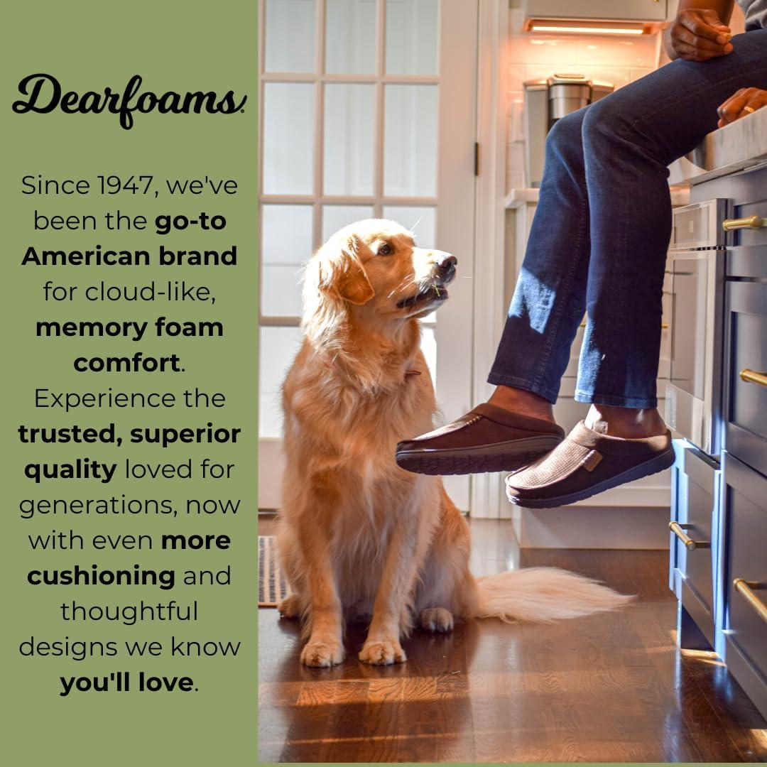 imageDearfoams Mens Brendan IndoorOutdoor Breathable Memory Foam Clog House Shoe with Wide Widths SlipperCoffee Twill