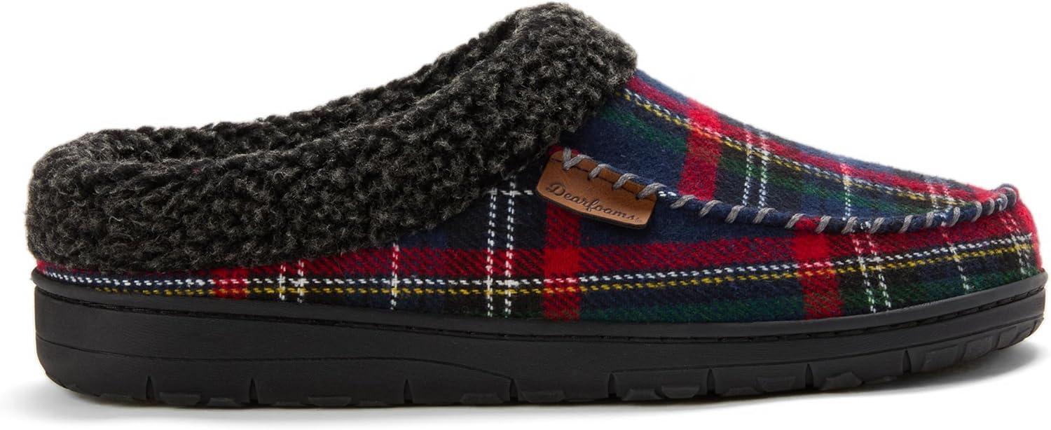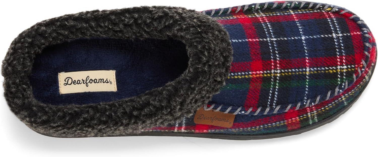 Dearfoams Men’s Brendan Indoor/Outdoor Breathable Memory Foam Clog House Shoe with Wide Widths Slipper(Blue Plaid)