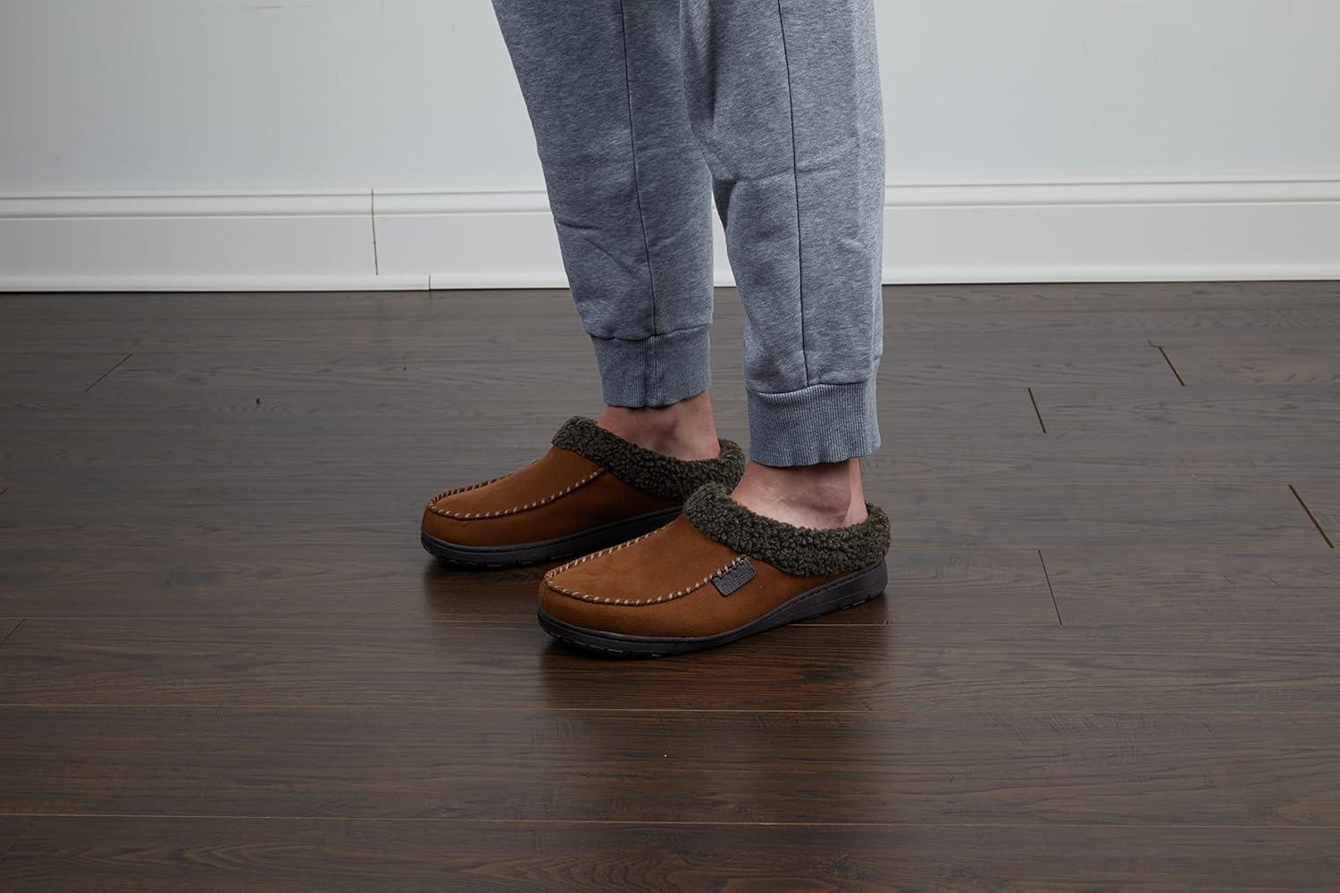 Dearfoams Men’s Brendan Indoor/Outdoor Breathable Memory Foam Clog House Shoe with Wide Widths Slipper(Chestnut 2)