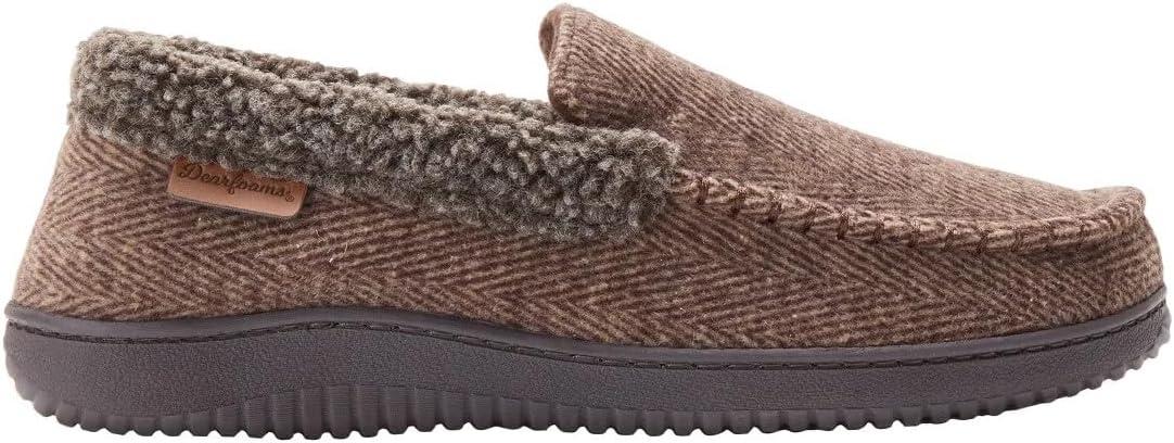 Dearfoams Men’s Brendan Indoor/Outdoor Breathable Memory Foam Clog House Shoe with Wide Widths Slipper(Coffee (Twill))