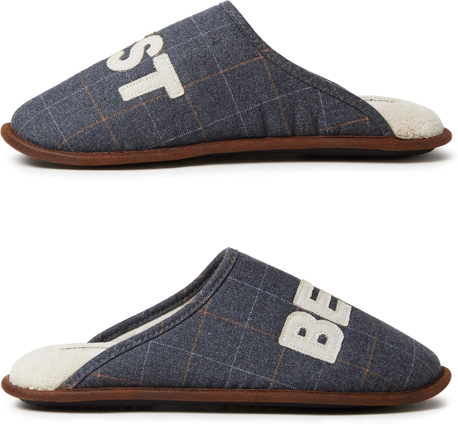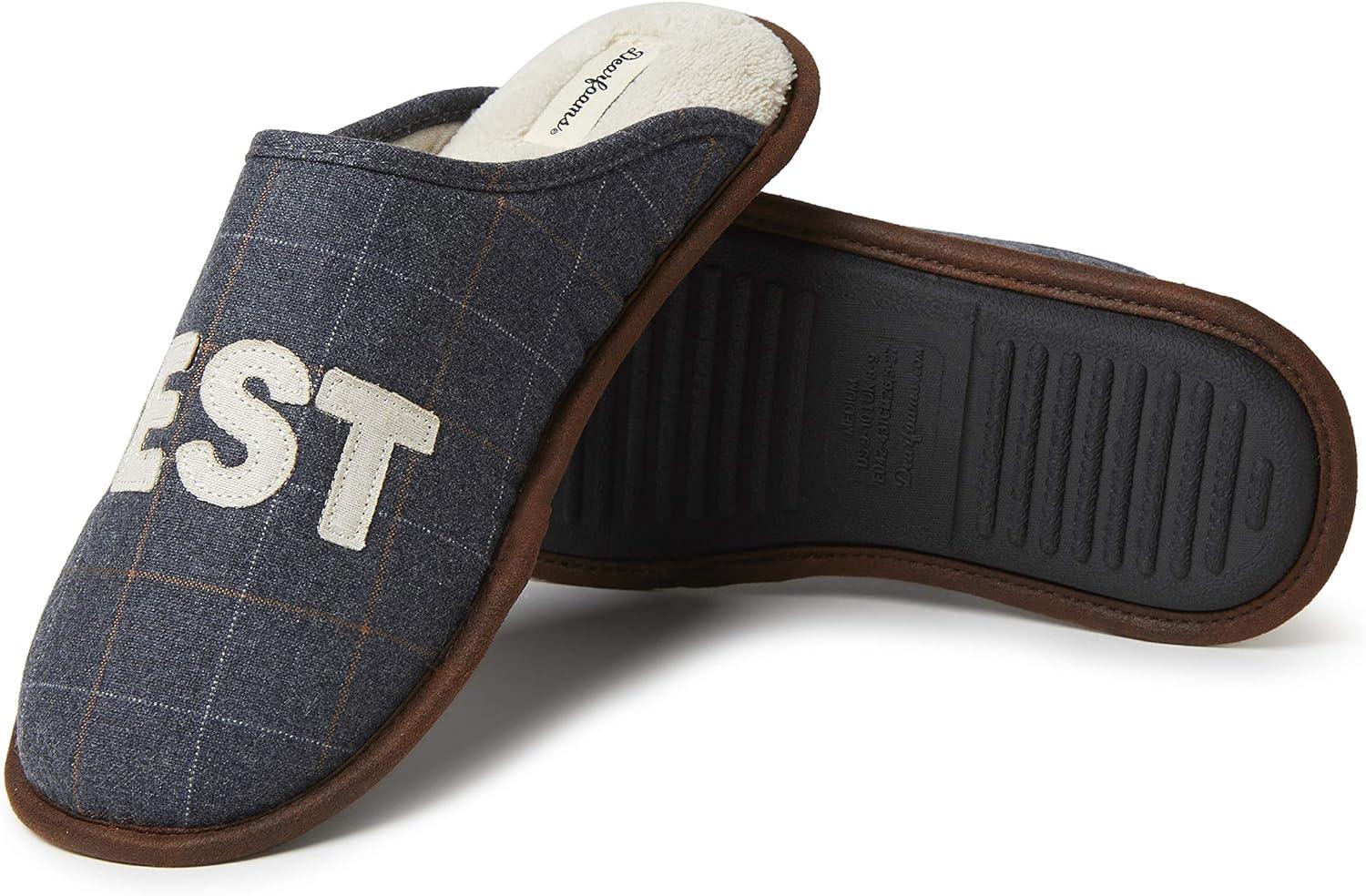These Dearfoams Men’s Scuff Slippers are a winning combination of charming, cozy and comfortable that will show Dad just how much you appreciate his cheesy jokes. Part of the Dearfoams Gifting Collection of matching slippers, these scuff slippers are a perfect gift for every Dad. These men’s scuffs feature a woven plaid upper, as well as a woven stripe lining and cozy faux sherpa footbed for classic comfort. Eye-catching and incredibly comfy, the scuff slippers are fit with a multi-density cushioned insole and topped with memory foam for a cloud-like feeling for your well-deserving feet. With an indoor/outdoor outsole, the bottom of the slippers is durable for constant support no matter where the day takes you. These Scuff Slippers feature men’s’ sizing from 7-14. Small fits 7-8, Medium fits 9-10, Large fits 11-12 and X-Large fits 13-14.