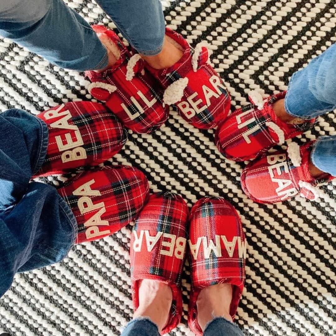 Dearfoams mens Gifts for Dad Funny Fathers Day Papa Bear Slipper(Red/Blue Plaid)