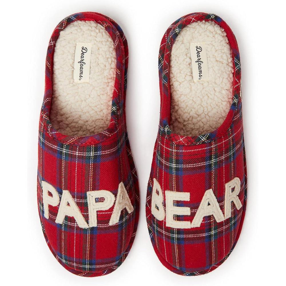 Dearfoams mens Gifts for Dad Funny Fathers Day Papa Bear Slipper(Tartan Plaid)