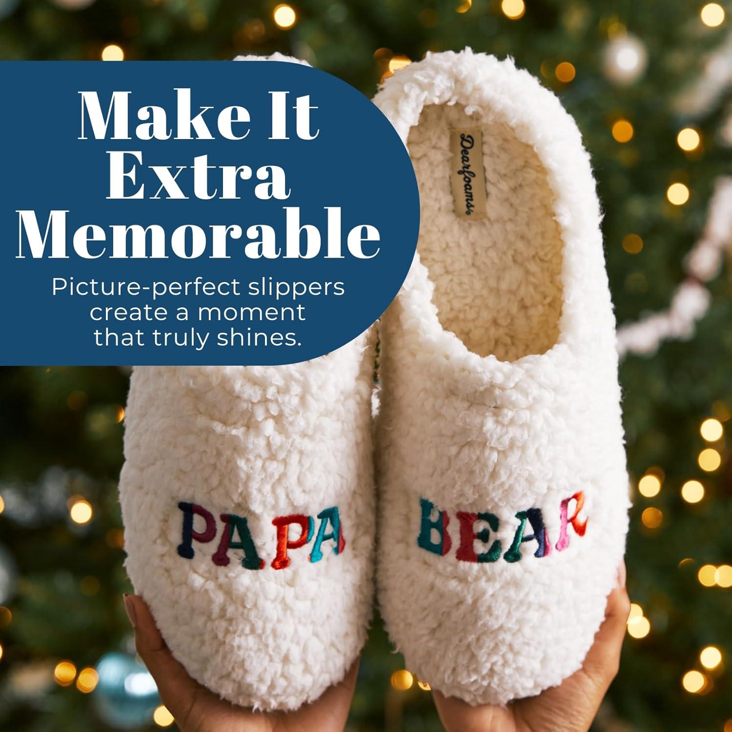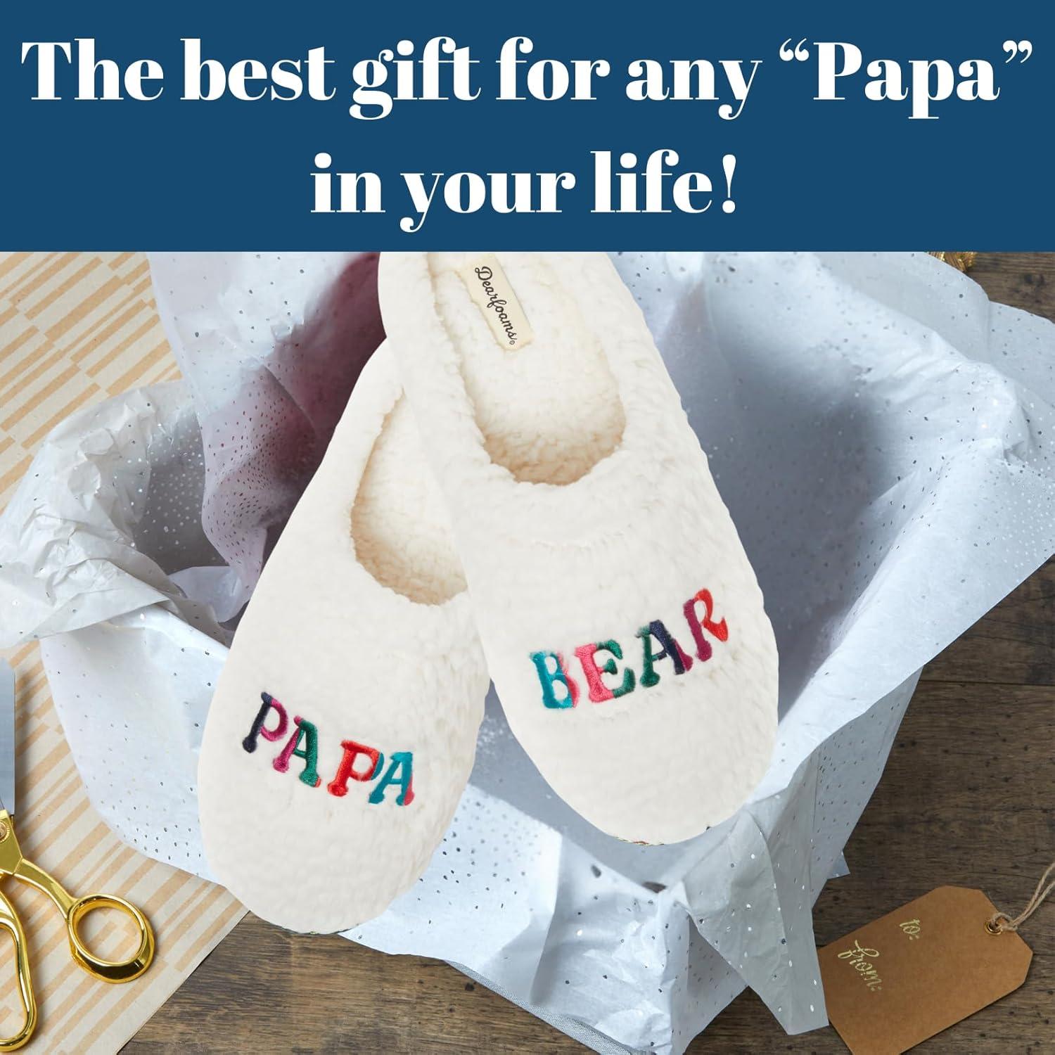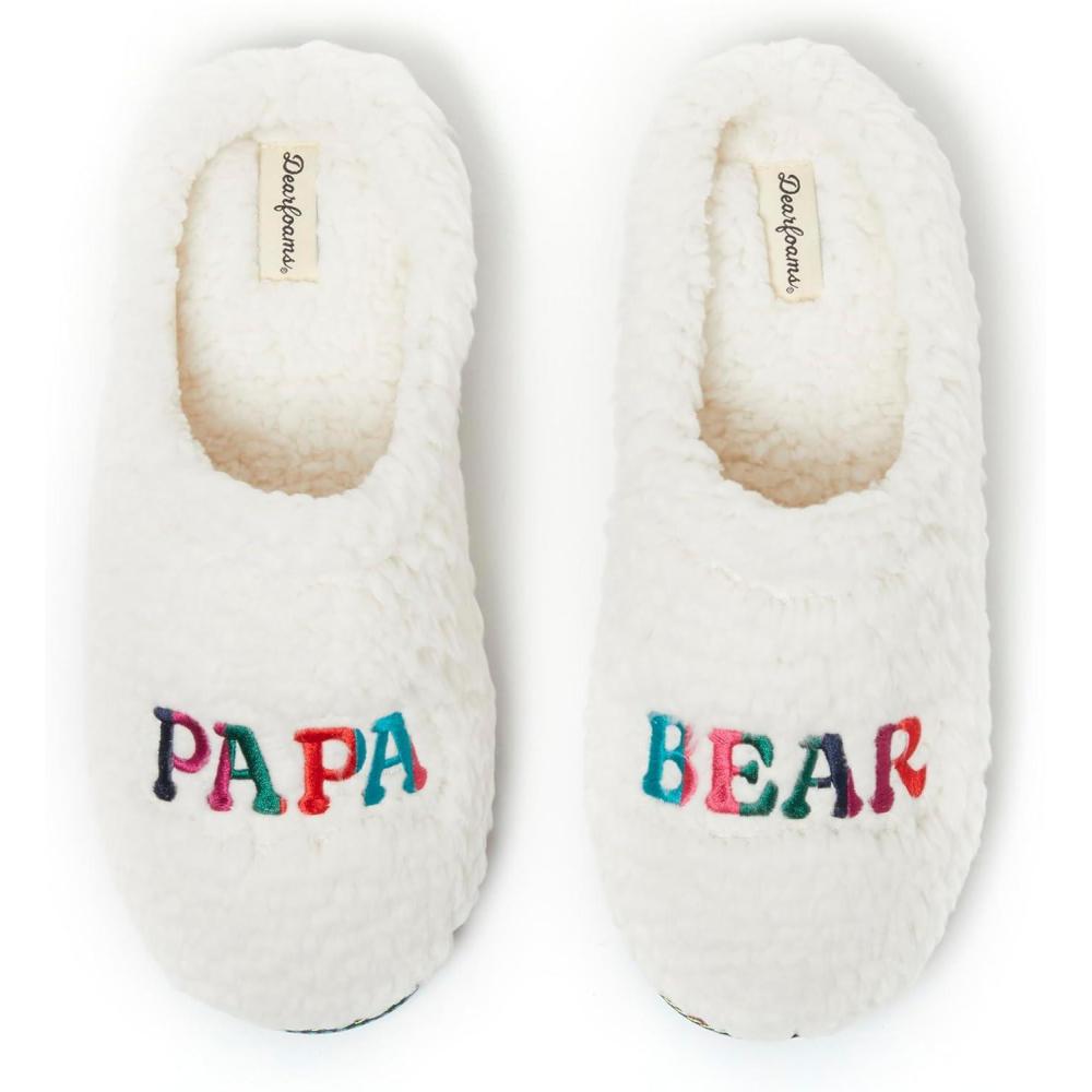 Dearfoams mens Gifts for Dad Funny Fathers Day Papa Bear Slipper(White)