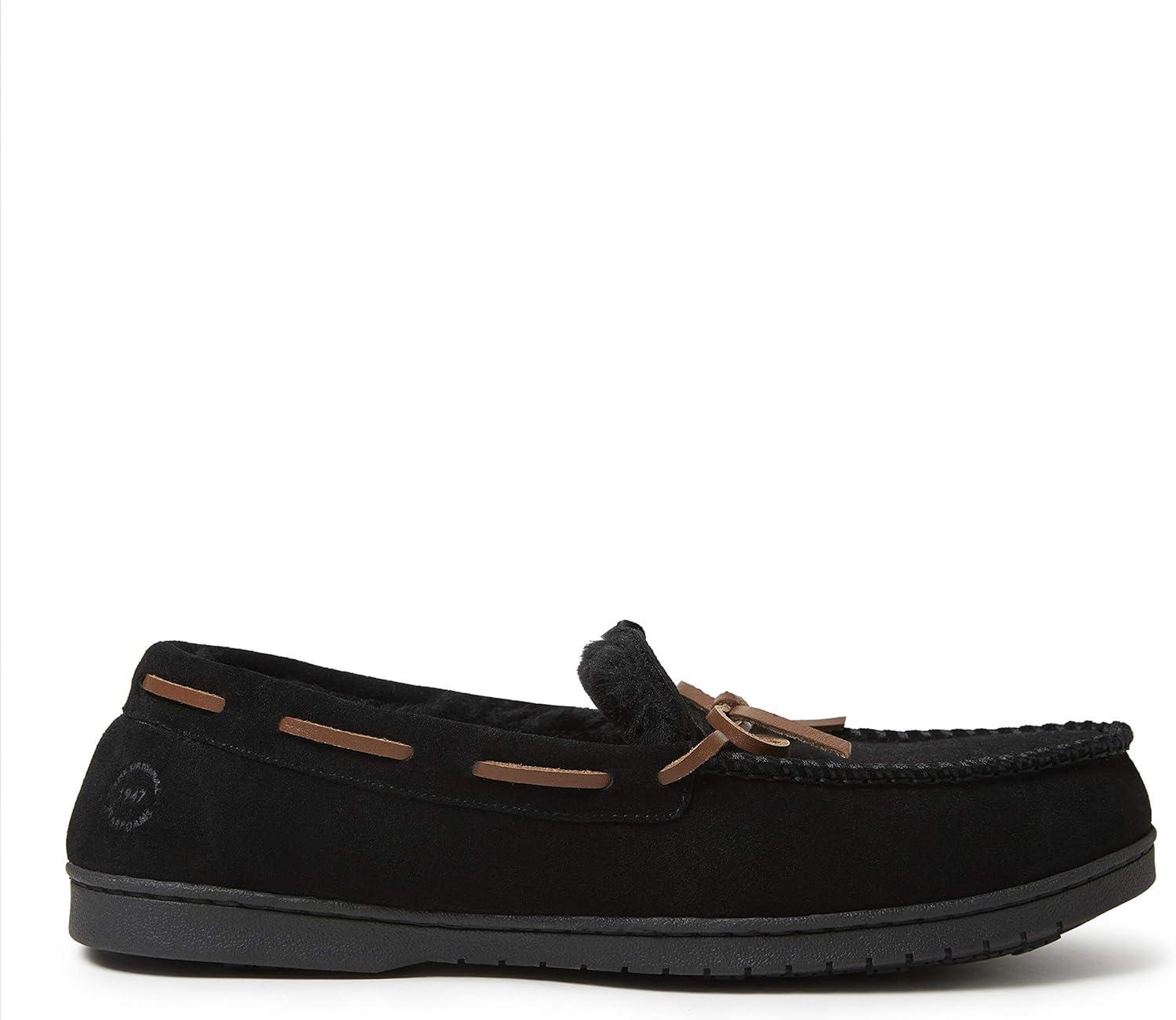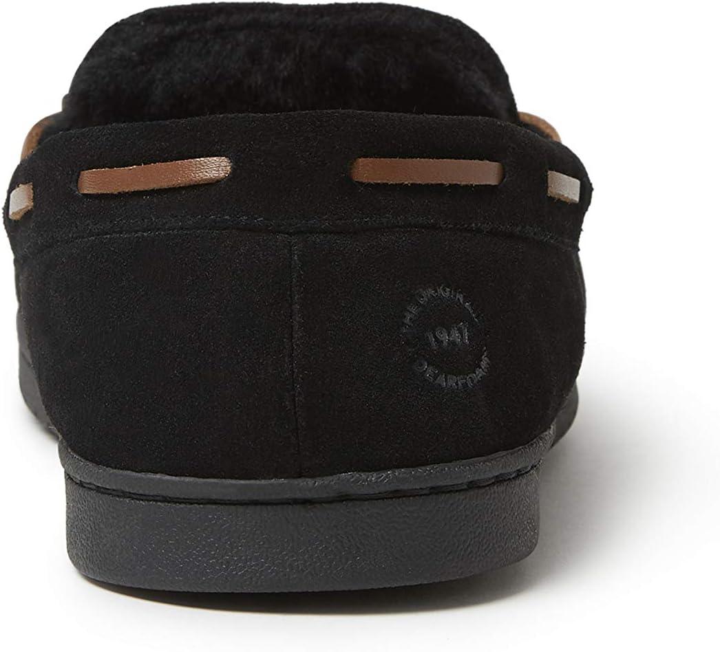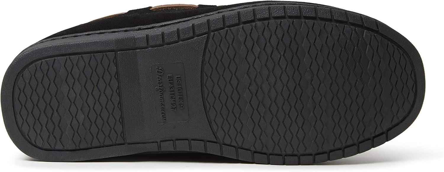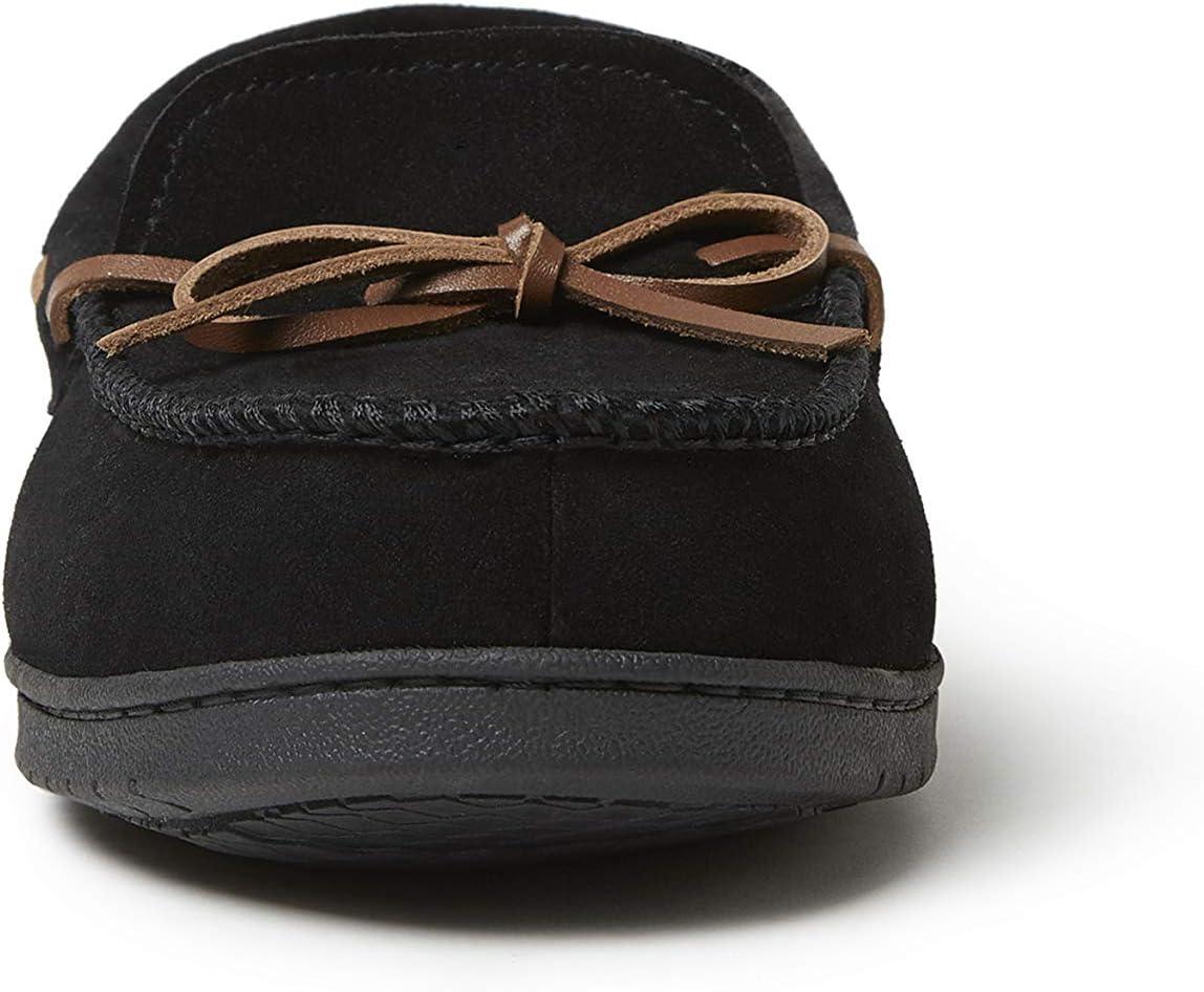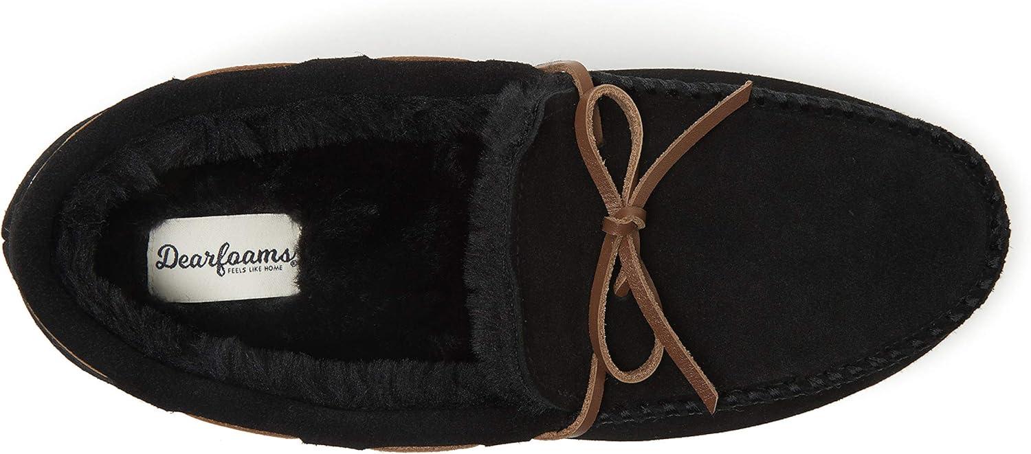 Dearfoams mens Hudson Genuine Suede Memory Foam Moccasin With Tie Slipper(Black)