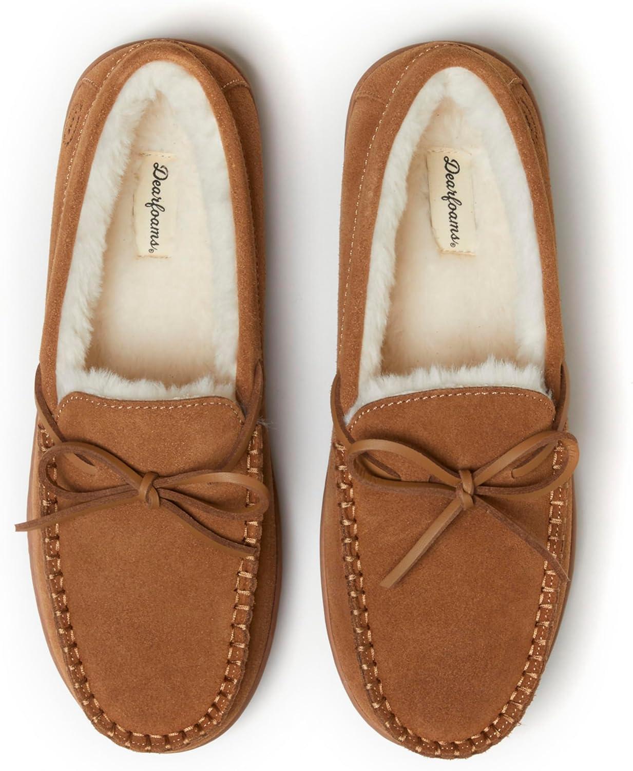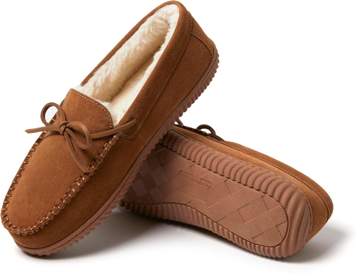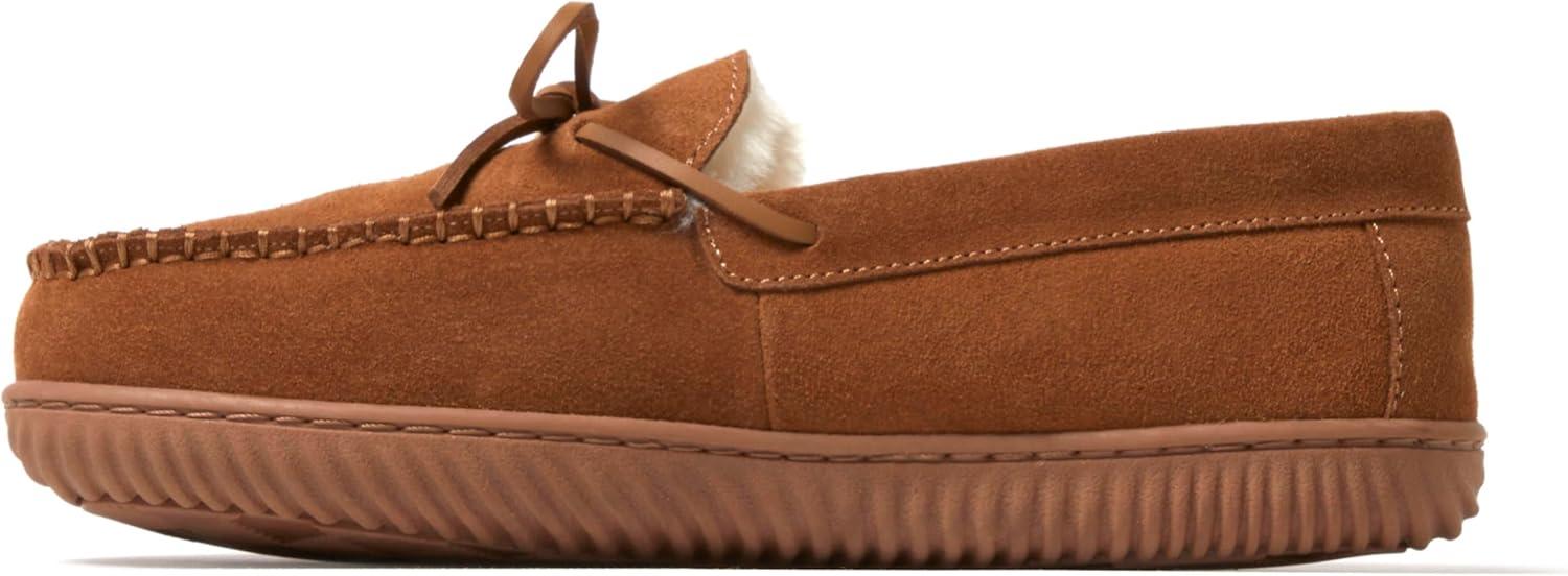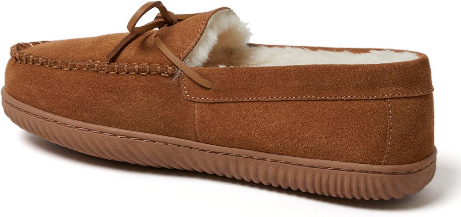 Dearfoams mens Hudson Genuine Suede Memory Foam Moccasin With Tie Slipper(Chestnut 2)