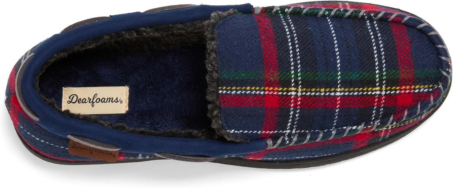 Dearfoams mens Keaton Memory Foam Indoor Outdoor Moccasin With Wide Widths Slipper(Blue Plaid)