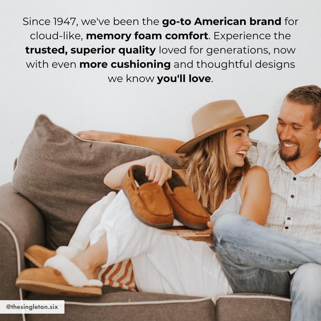 Constructed with quality materials, Dearfoams men’s slippers offer unbeatable comfort and timeless style!These indoor/outdoor slippers feature easy on/off designs alongside supersoft memory foam insoles. They’re the perfect choice for walking your dog around the block, grabbing the mail, taking out the trash, and more! Thanks to our innovative temperature-regulating DF Adapt designs, our men’s slippers are extra-breathable to help cut down on odor. Whether you’re looking for clog slippers, moccasin slippers, boot slippers, or closed back slippers, our men’s slippers are an extra-cozy, extra-smart pick! And when it’s time for a quick refresh, machine washable designs make keeping clean a breeze! Simply drop your slippers in the washer, set your machine toa gentle, cold cycle, and air dry; you’ll be back to relaxing in no time at all.