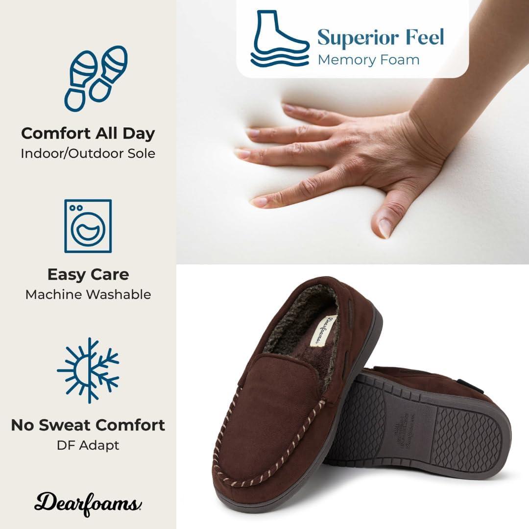 Dearfoams mens Keaton Memory Foam Indoor Outdoor Moccasin With Wide Widths Slipper(Coffee Microsuede)