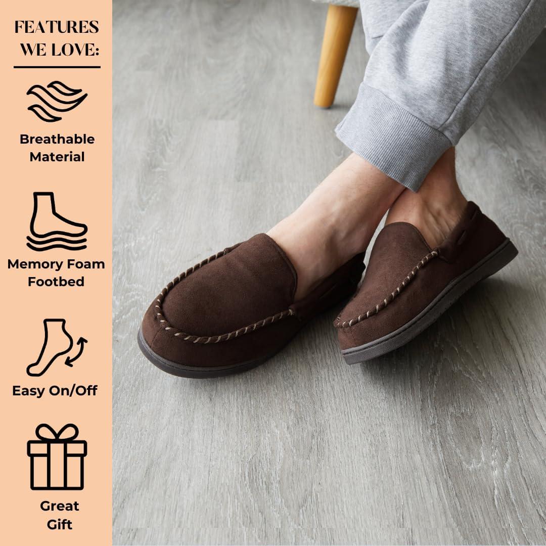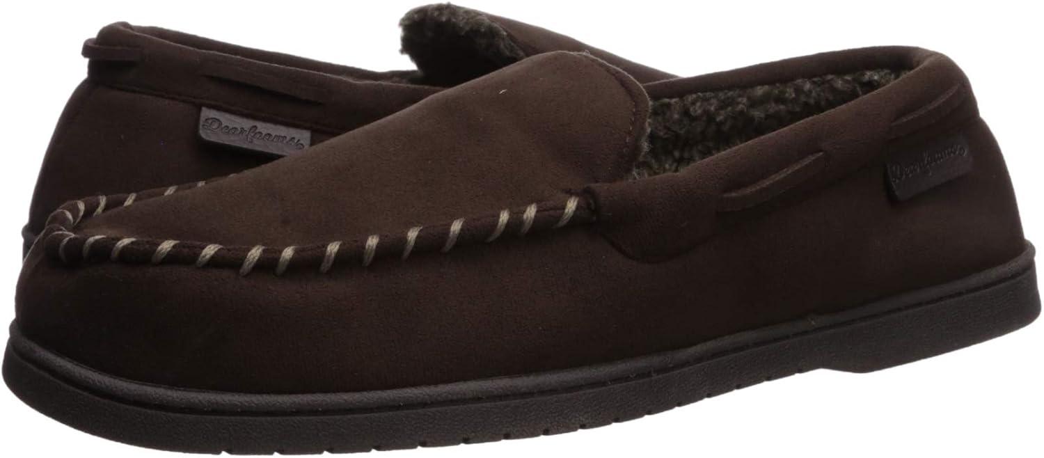 Dearfoams mens Keaton Memory Foam Indoor Outdoor Moccasin With Wide Widths Slipper(Chestnut Microsuede)