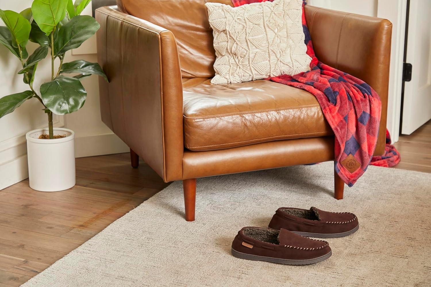 Dearfoams mens Keaton Memory Foam Indoor Outdoor Moccasin With Wide Widths Slipper(Coffee Twill)