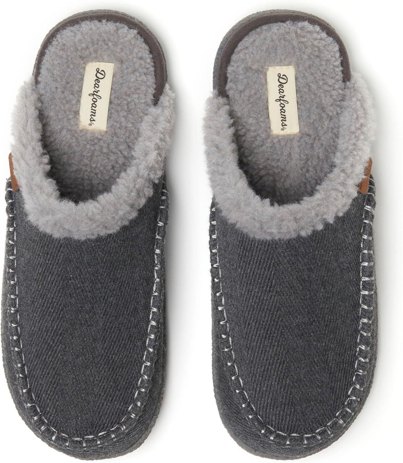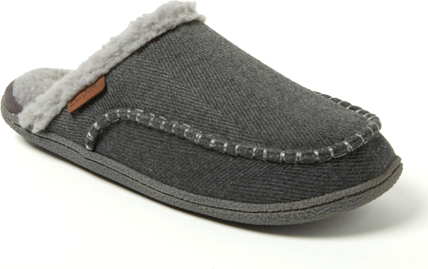 Dearfoams mens Matthew Moc Toe Scuff Indoor Outdoor House Shoe(Grey)