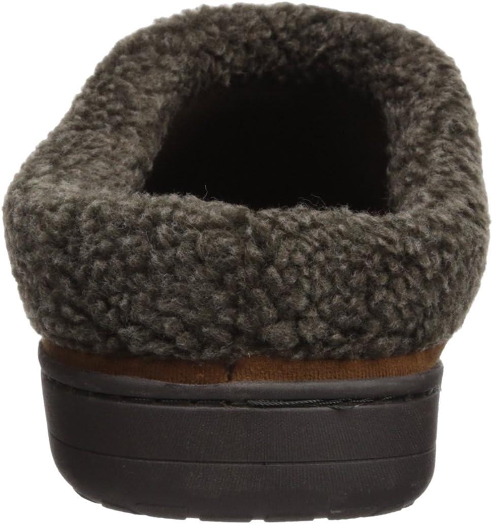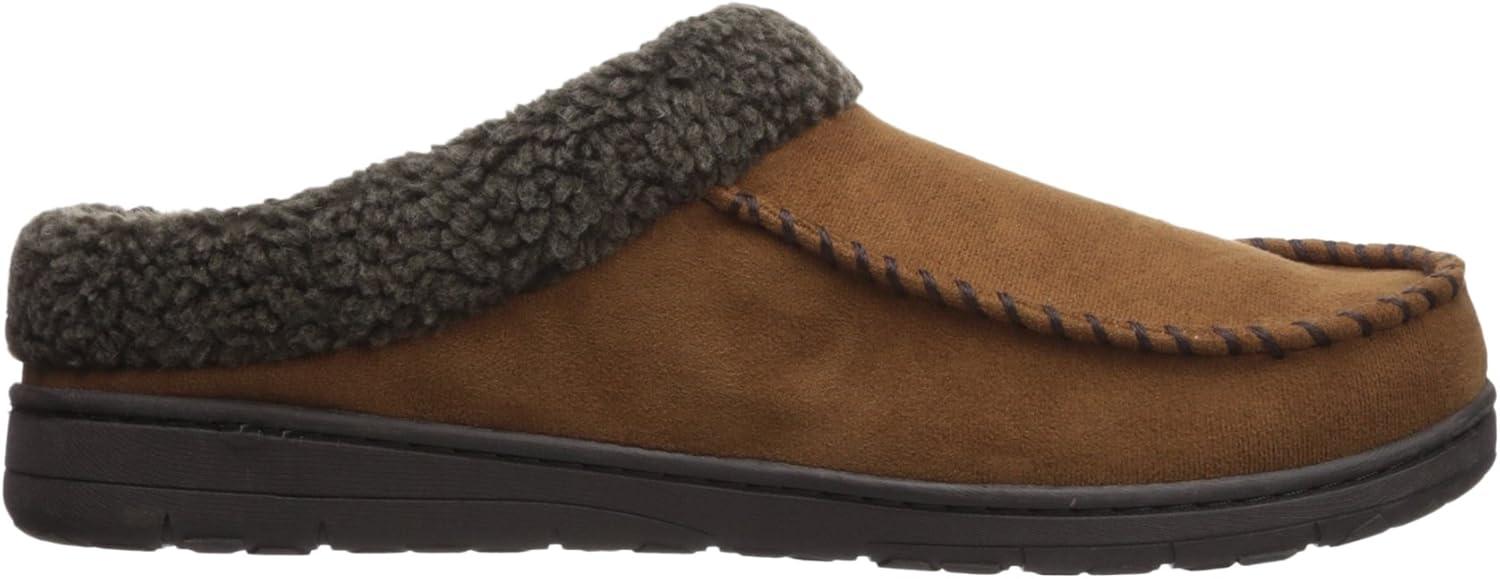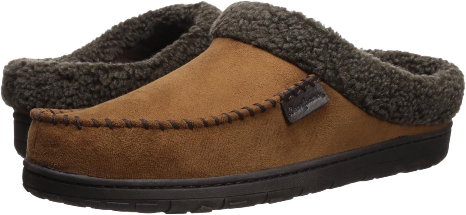 Comfortable men's memory foam slippers. Dearfoams Men's Memory Foam Slipper features: Microfiber upper with whipstitch detail Pile lining and microfiber terry sock Cushioned insole with memory foam Content: 100% Polyester Care Instructions: Gentle machine wash cold No bleach Dry flat Available in sizes: S= 7-8 | M= 9-10 | L= 11-12 | XL= 13-14
