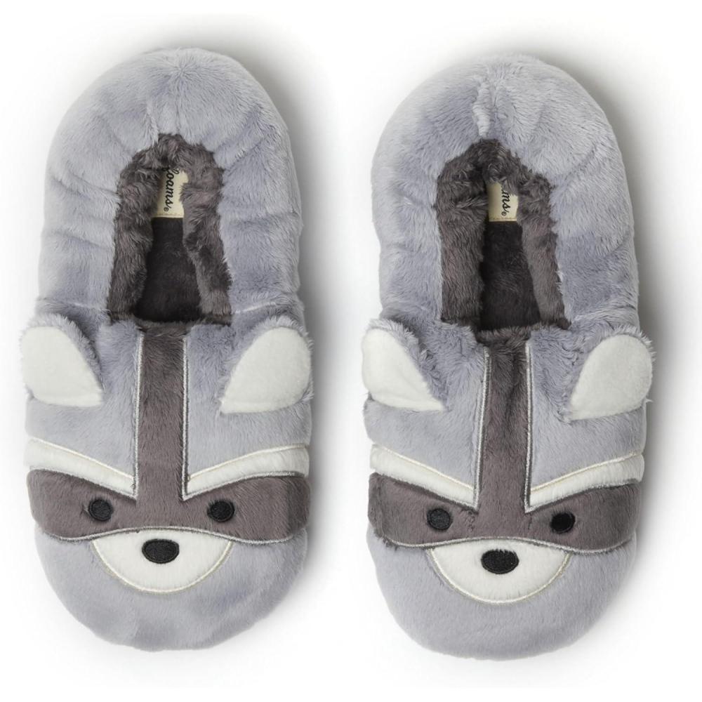 Dearfoams Unisex Adult Holiday Christmas Gift Family Matching Santa Reindeer Teddy Bear Plush Memory Foam Slippers(Adult Racoon)