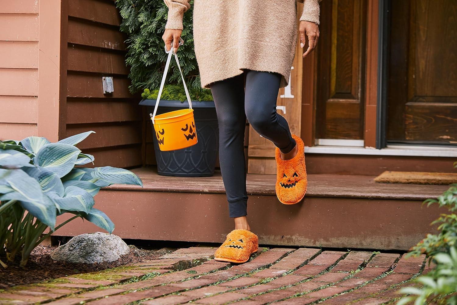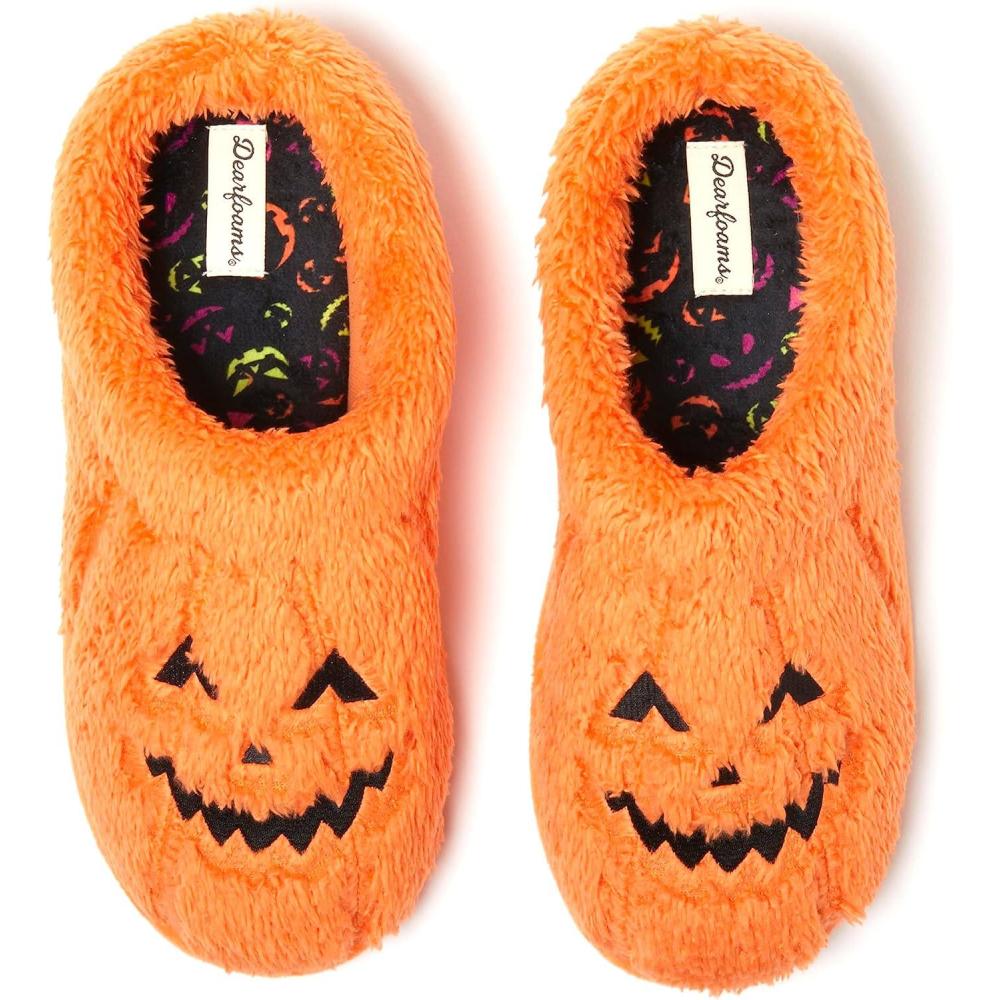 Dearfoams Unisex-Adult Spooky Fuzzy Halloween Pumpkin Jack O Lantern Slipper(Adult Pumpkin)