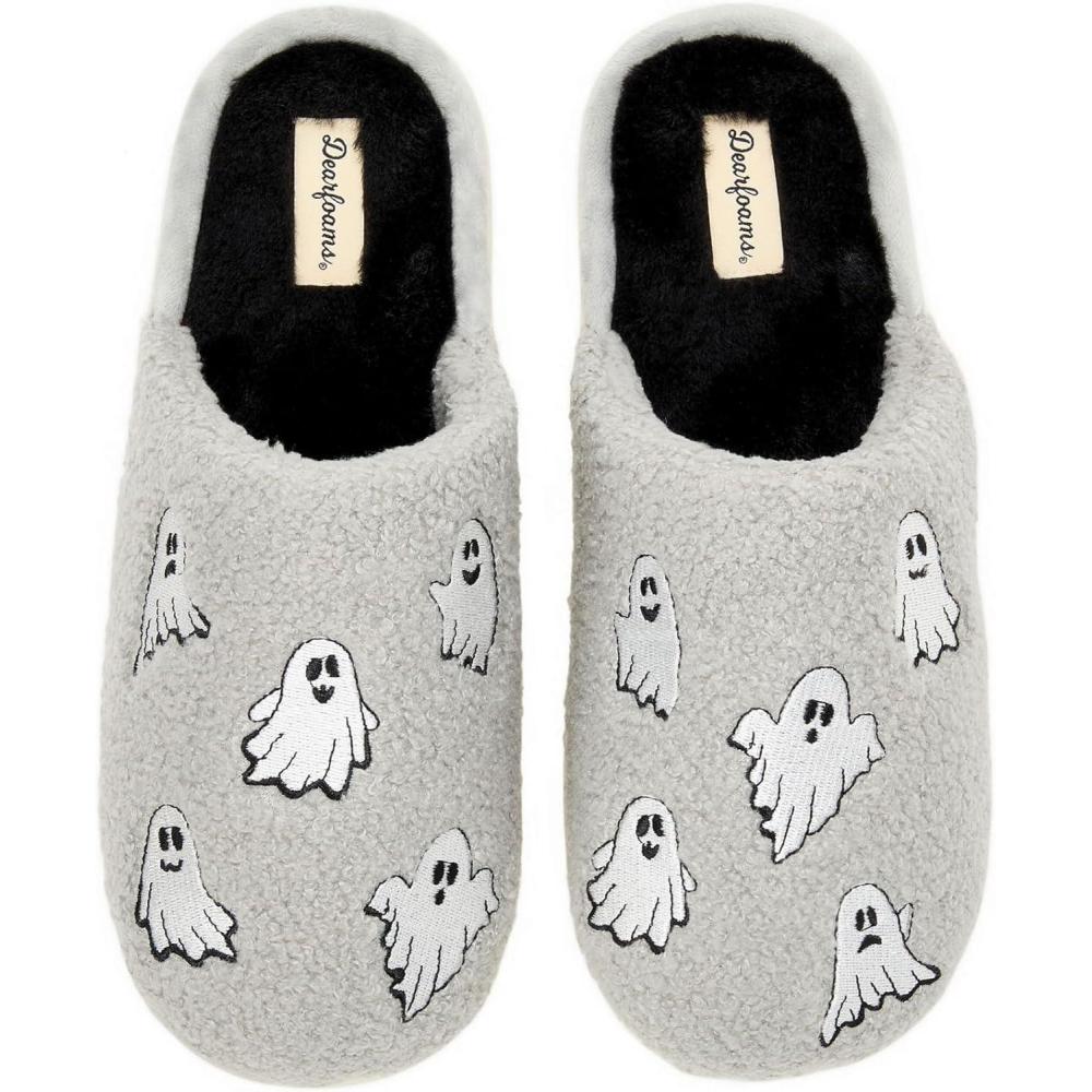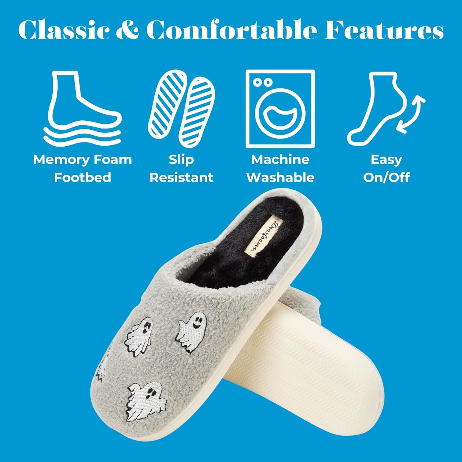 Dearfoams Unisex-Adult Spooky Fuzzy Halloween Pumpkin Jack O Lantern Slipper(Grey Ghost)