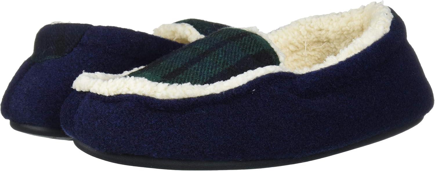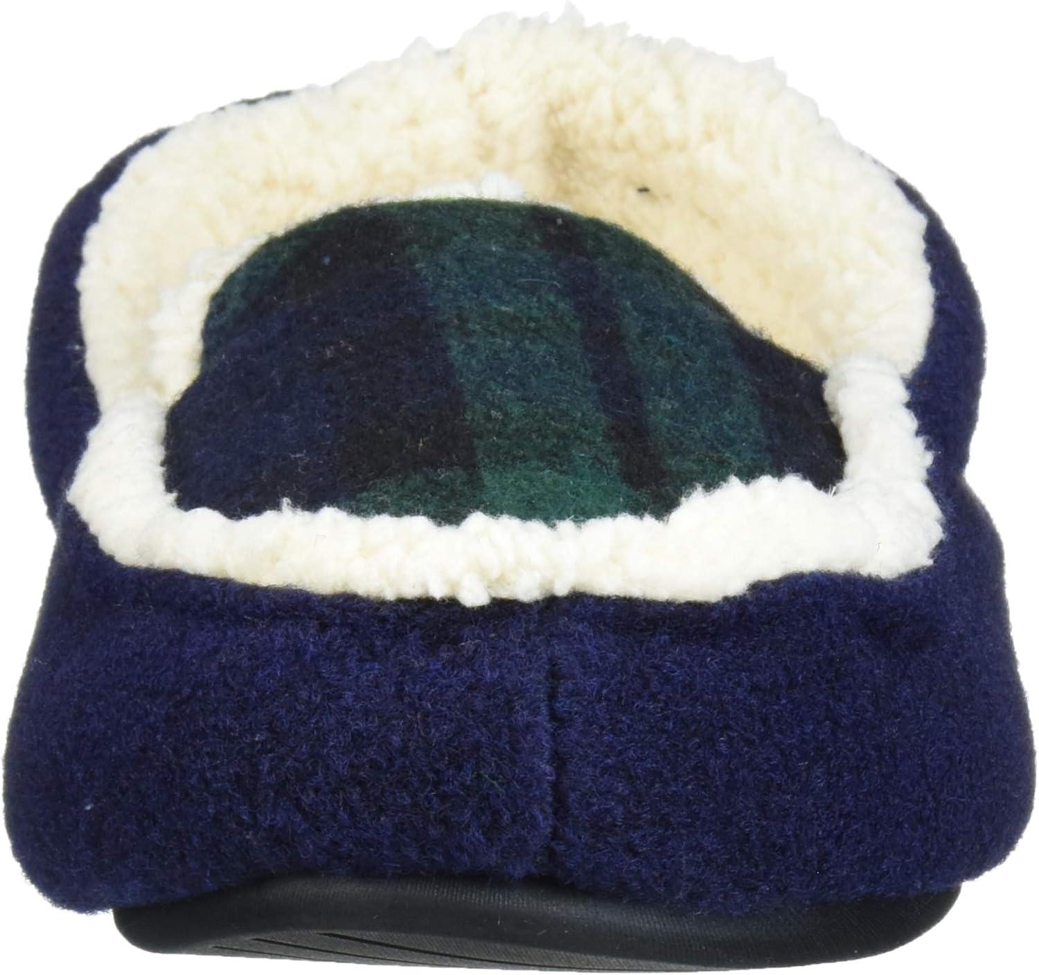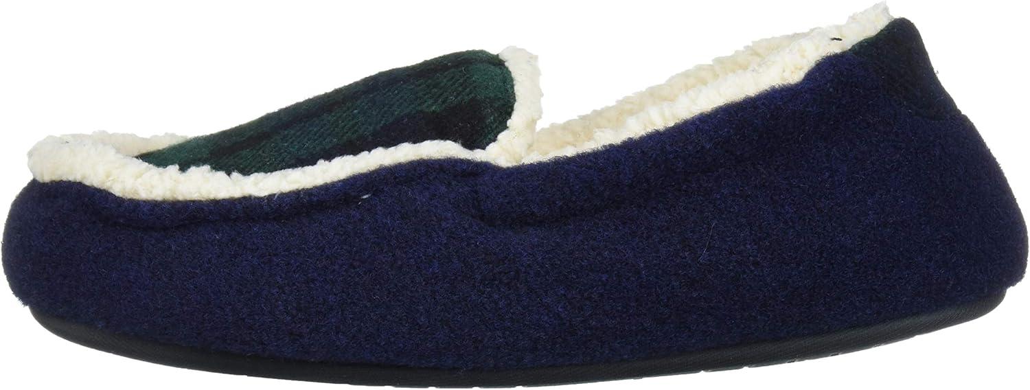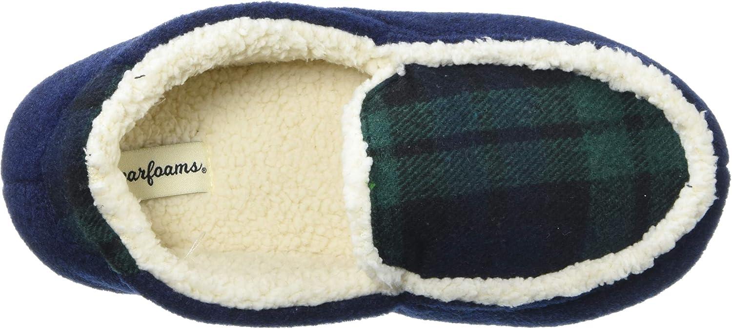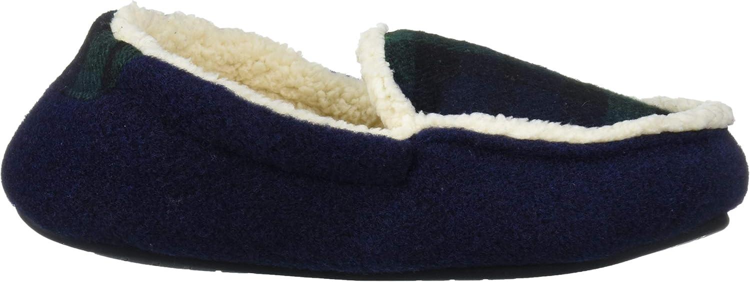 Dearfoams Unisex-Baby Kids Toddlers Felted Microwool and Plaid Moccasin Slipper, Navy blazer, 7-8 Toddler Medium US Toddler