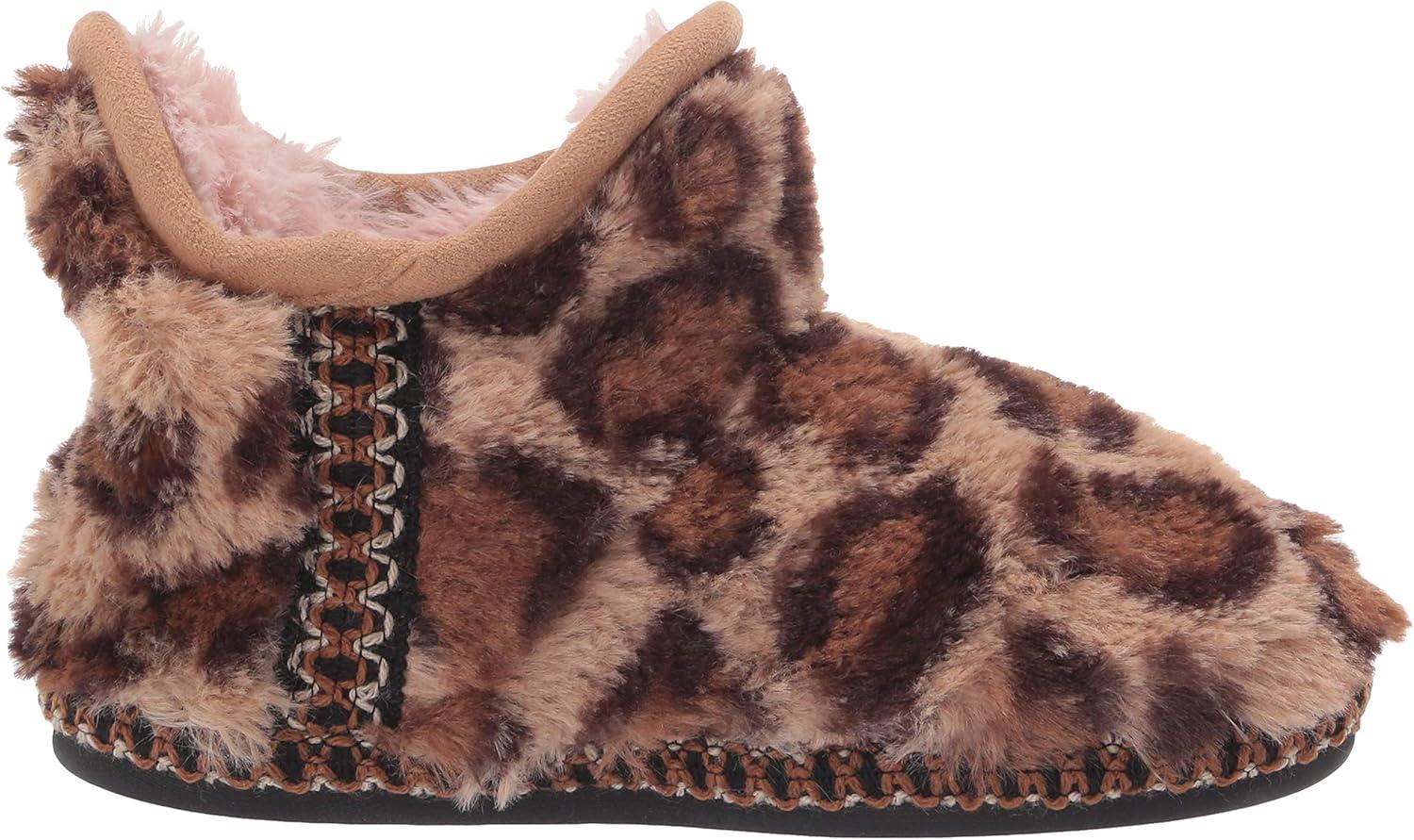 Dearfoams Unisex-Child Charlotte faux faux fur Bootie Slipper(Leopard)