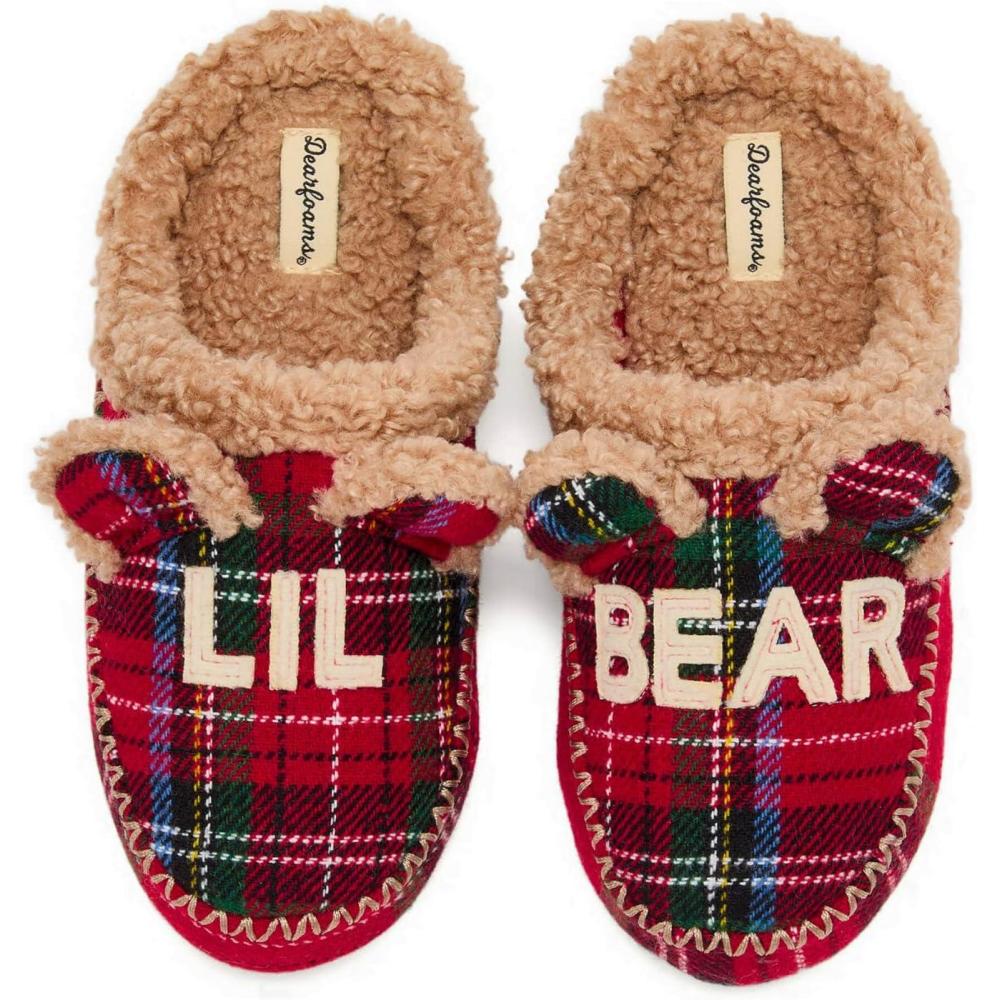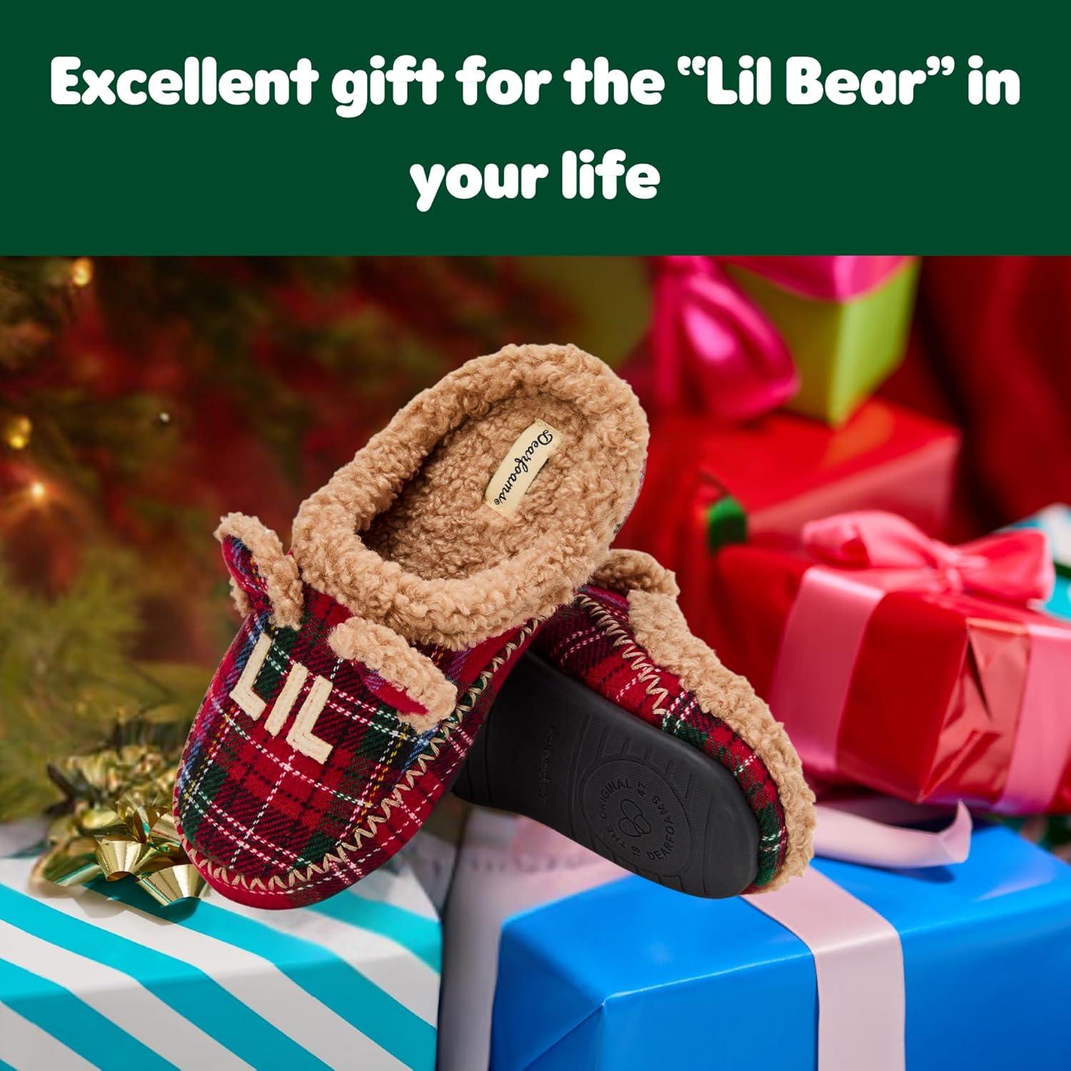 Dearfoams Unisex-Child Gifts for Kids Matching Christmas Holiday Lil Baby Bear Slipper(Red Tartan Plaid)