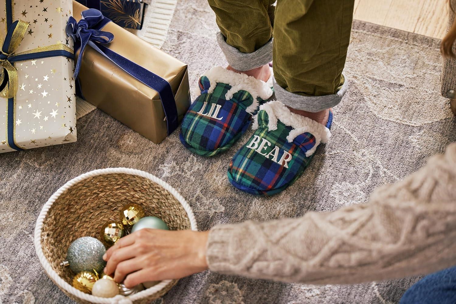 Dearfoams unisex-child Gifts for Kids Matching Christmas Holiday Lil Bear and Baby Bear(Lil Bear Furry Plaid)