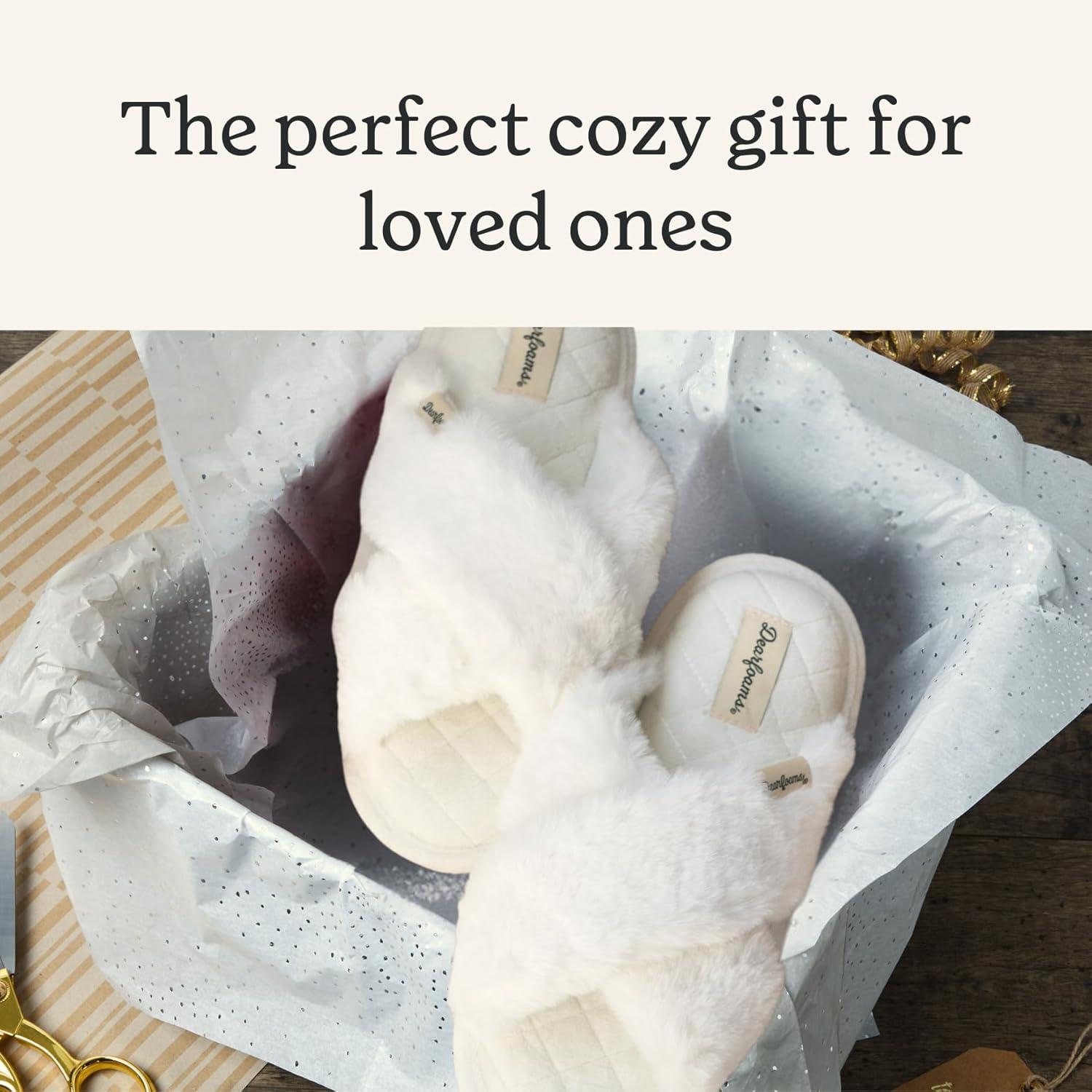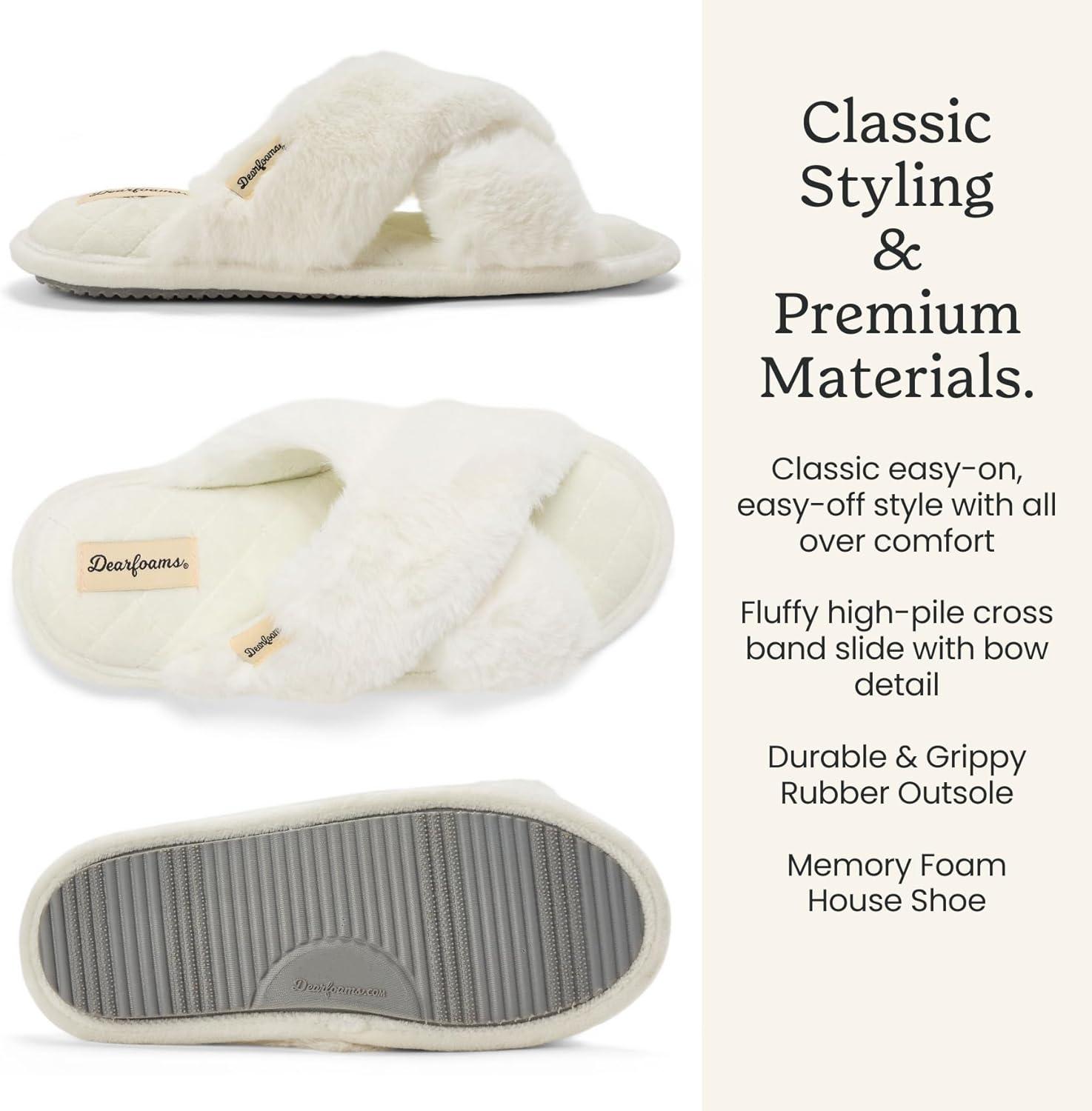 Dearfoams Women’s Acquired Style & Danielle Pheloung Exclusive Memory Foam Jessica Cozy Bow Cross Band Slide Slippers(Alabaster)