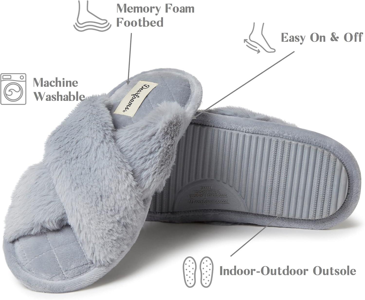 Slip into something that feels as good as it looks. The Dearfoams Furry Cross-Band Slide wraps your feet in plush faux fur that’s irresistibly soft to the touch, with a cross-band design that’s equal parts cozy and chic. Inside, a cushioned memory foam insole molds to your foot for personalized comfort, while DF Adapt tech keeps things cool and breathable. From lazy mornings with coffee to evenings unwinding on the couch, these slippers are made to keep up with your every move. And because comfort doesn’t stop at your front door, the durable indoor/outdoor sole lets you take that cozy feeling with you—whether it’s grabbing the mail, walking the dog, or stepping out to the patio. Available in a range of versatile colors and sizes, they’re the perfect mix of style, comfort, and all-day wearability.