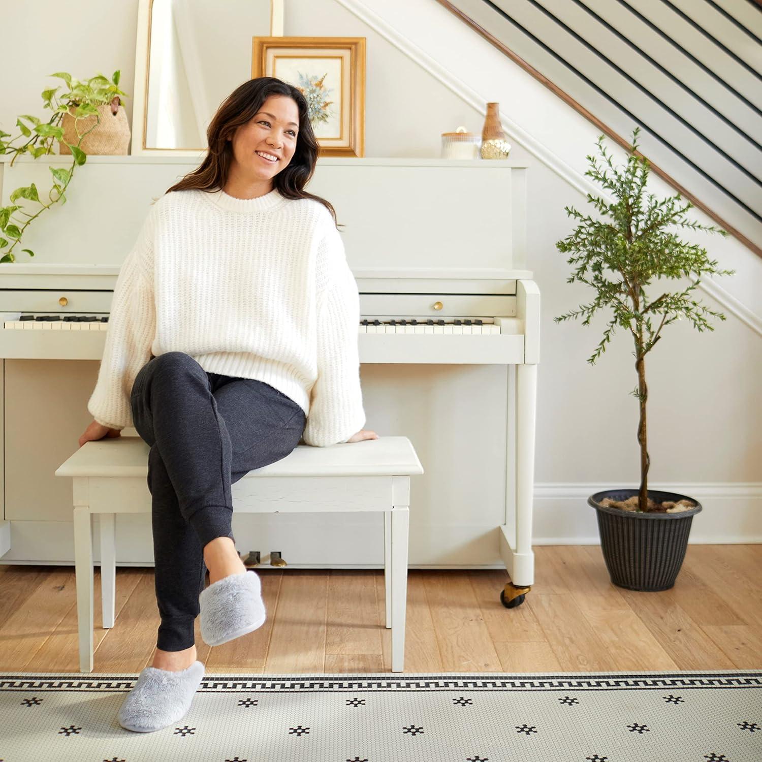 Dearfoams Women’s Bailey Plush Furry Scuff Slipper(Sleet)