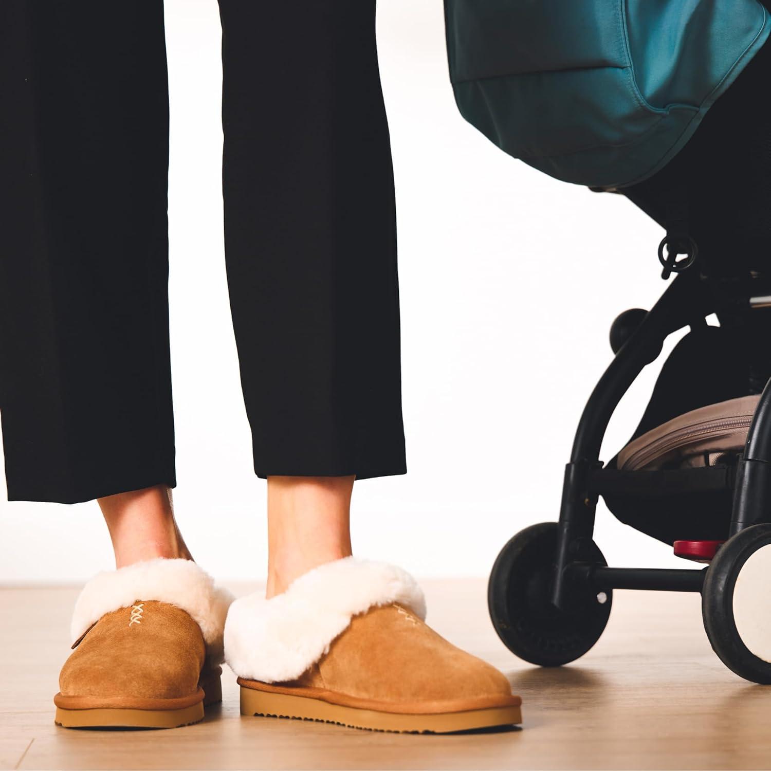 Luxury for everyone. That’s the idea behind the Fireside Collection: a line of slippers at an everyday price on superior quality competitive with other slipper brands. Perfect as a thoughtful gift for your loved ones, Fireside shearling slippers are sure to be their new favorite way to relax! Made with genuine Australian sheepskin lining, these affordable shearling slippers are a must for relaxing in style. But why shearling? Shearling boasts natural temperature-regulating and moisture-wicking properties. They’re a great blend of insulated and breathable, and a few of our styles even feature water-resistant designs to help protect you from the elements. Shearling is also known for its durability; these long-lasting slippers are sure to be favorites for years to come! Temperature-regulating and moisture-wicking slippers are perfect no matter the weather, and these indoor/outdoor slippers are built to handle the busiest of days. Our men’s shearling slippers, women’s shearling slippers, and kids’ shearling slippers are designed with unbeatable quality in mind.
