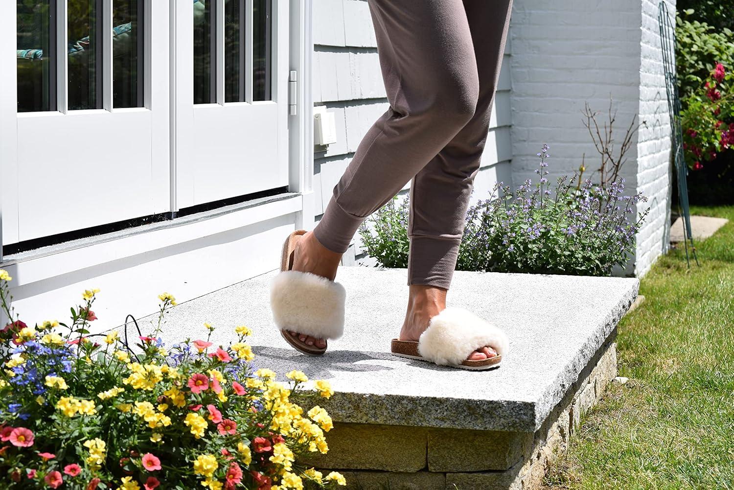 Customize your comfort with our Fireside Canberra slides! The cork footbed offers the perfect blend of cool and comfy, no matter the weather. Natural moisture-wicking and temperature-regulating properties ensure long-lasting freshness, while supersoft genuine shearling lining cradles your feet with every step.
