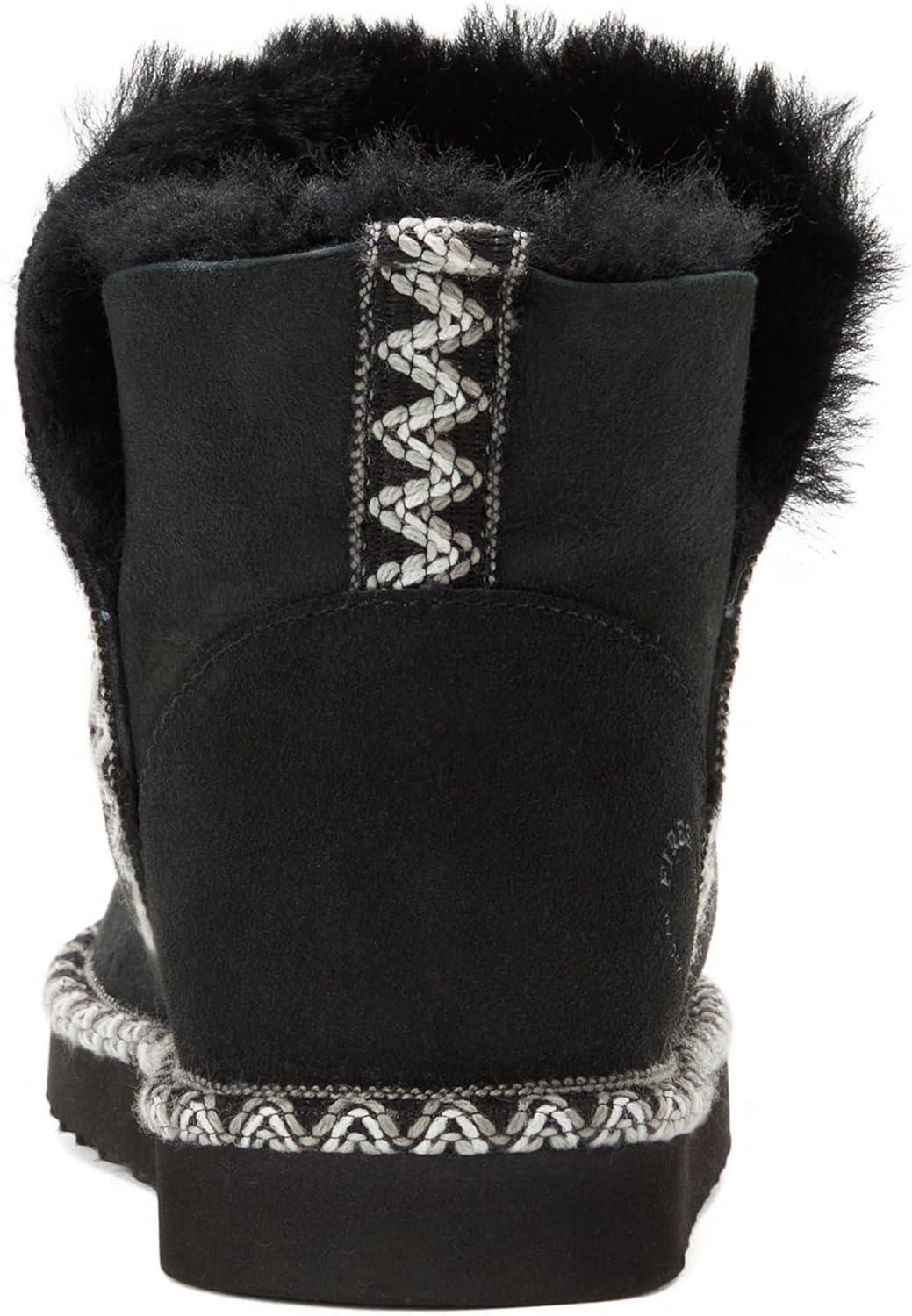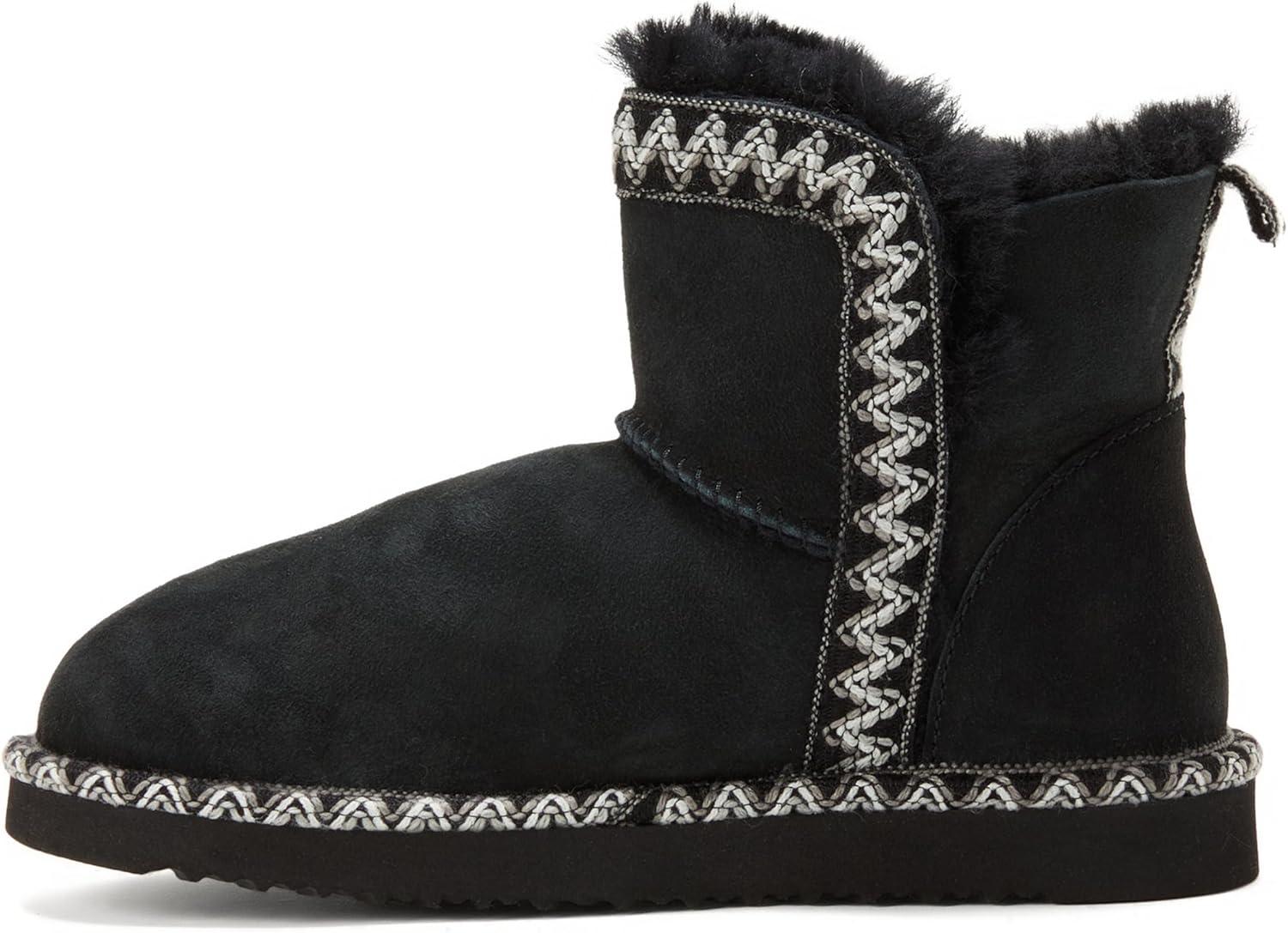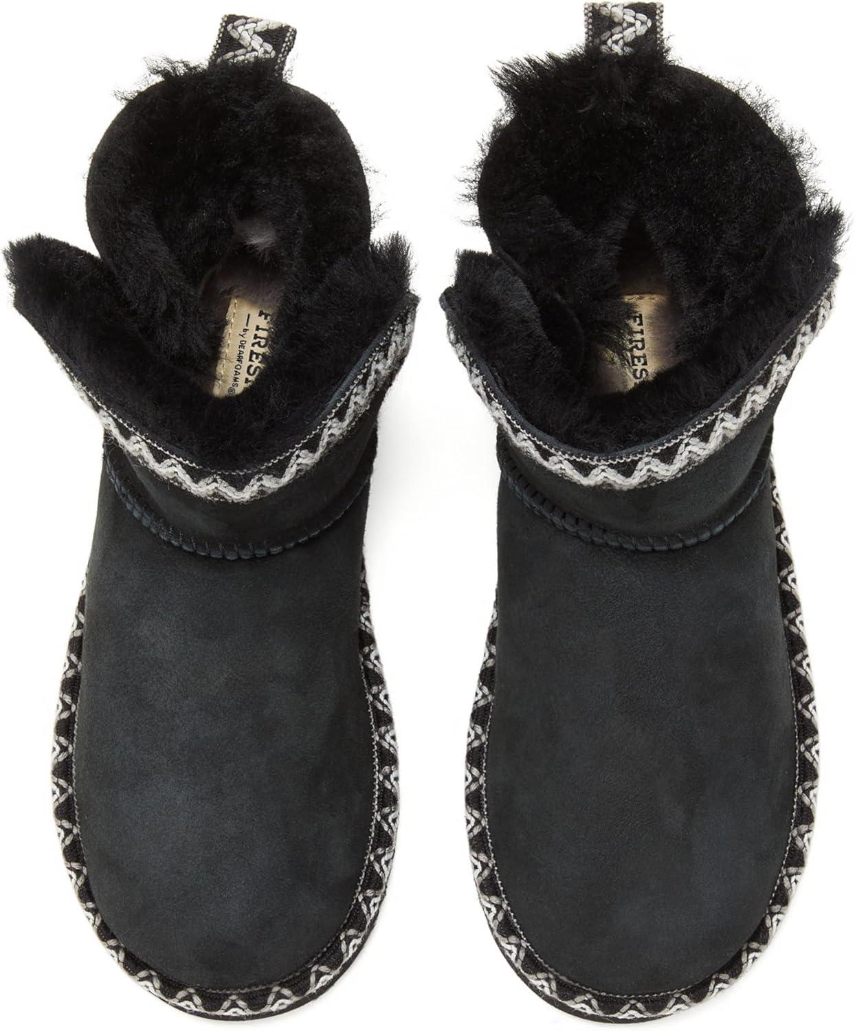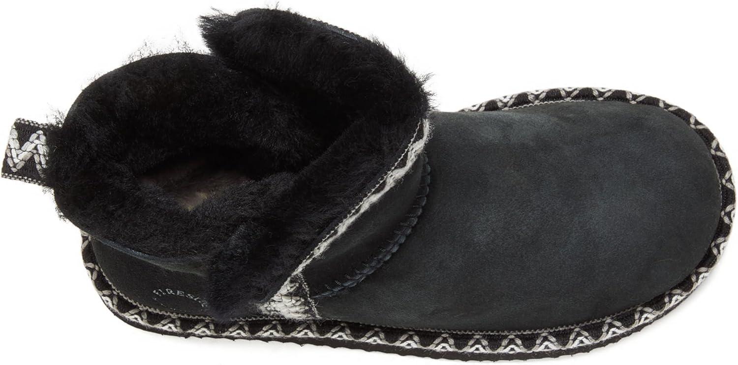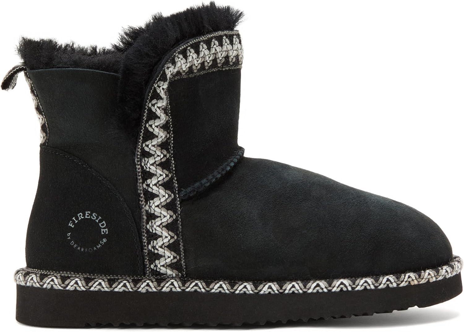 Dearfoams Women’s Fireside Shearling Water Resistant Indoor/Outdoor Foldover Boot Slipper(Black Taping)