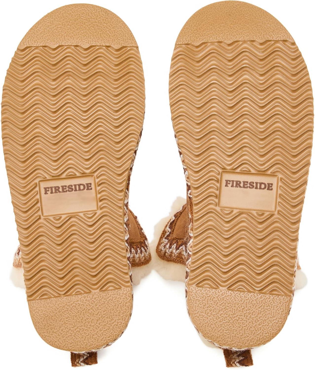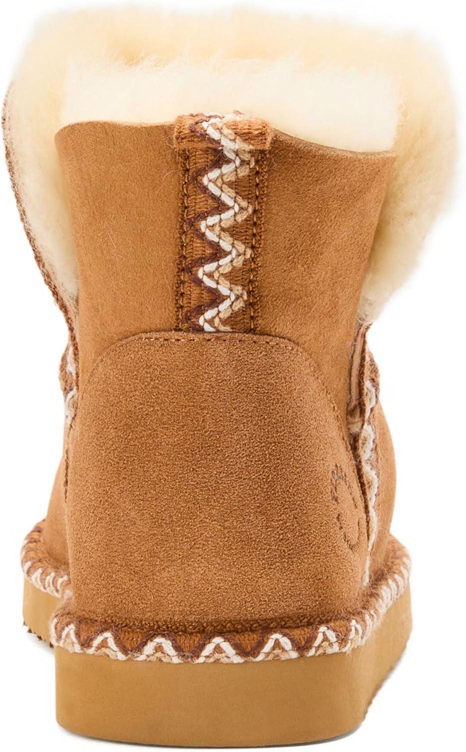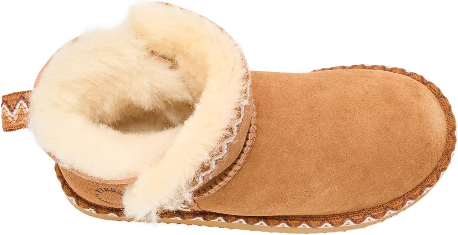 Dearfoams Women’s Fireside Shearling Water Resistant Indoor/Outdoor Foldover Boot Slipper(Chestnut Taping)