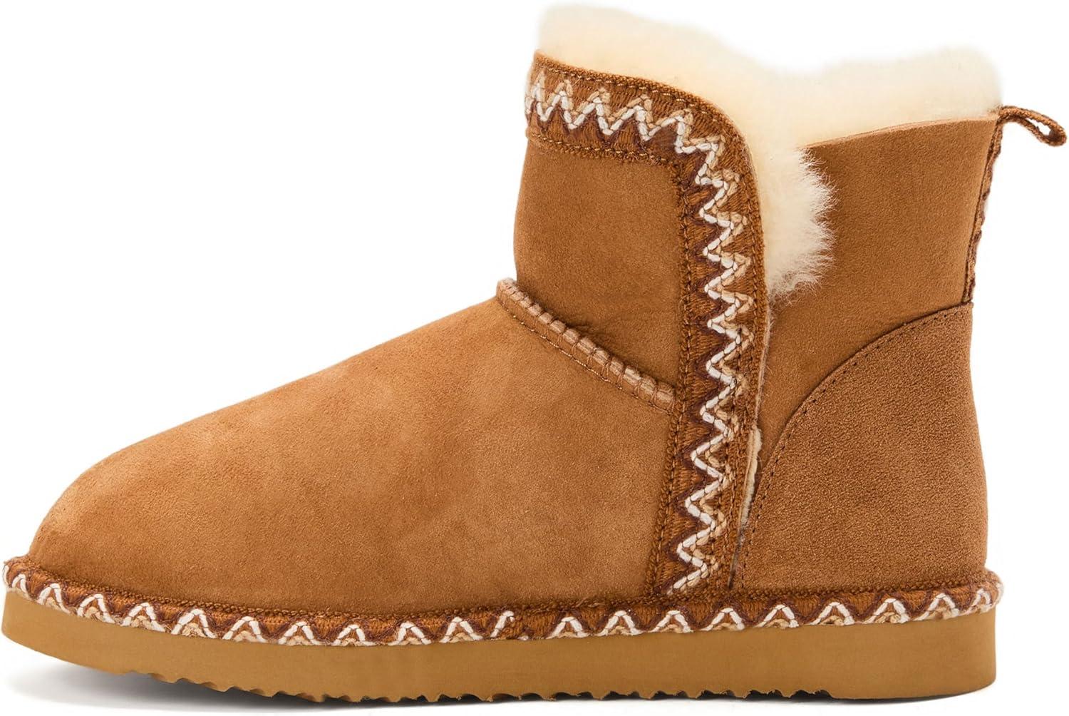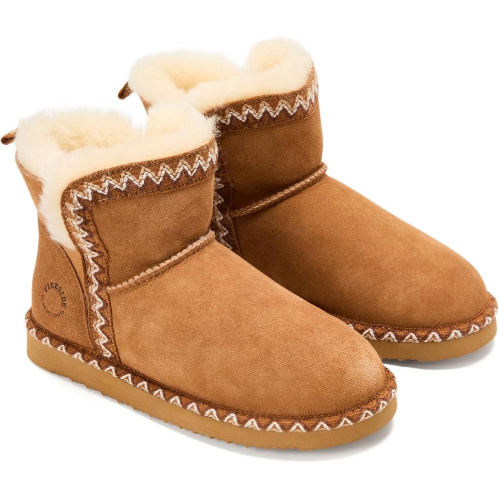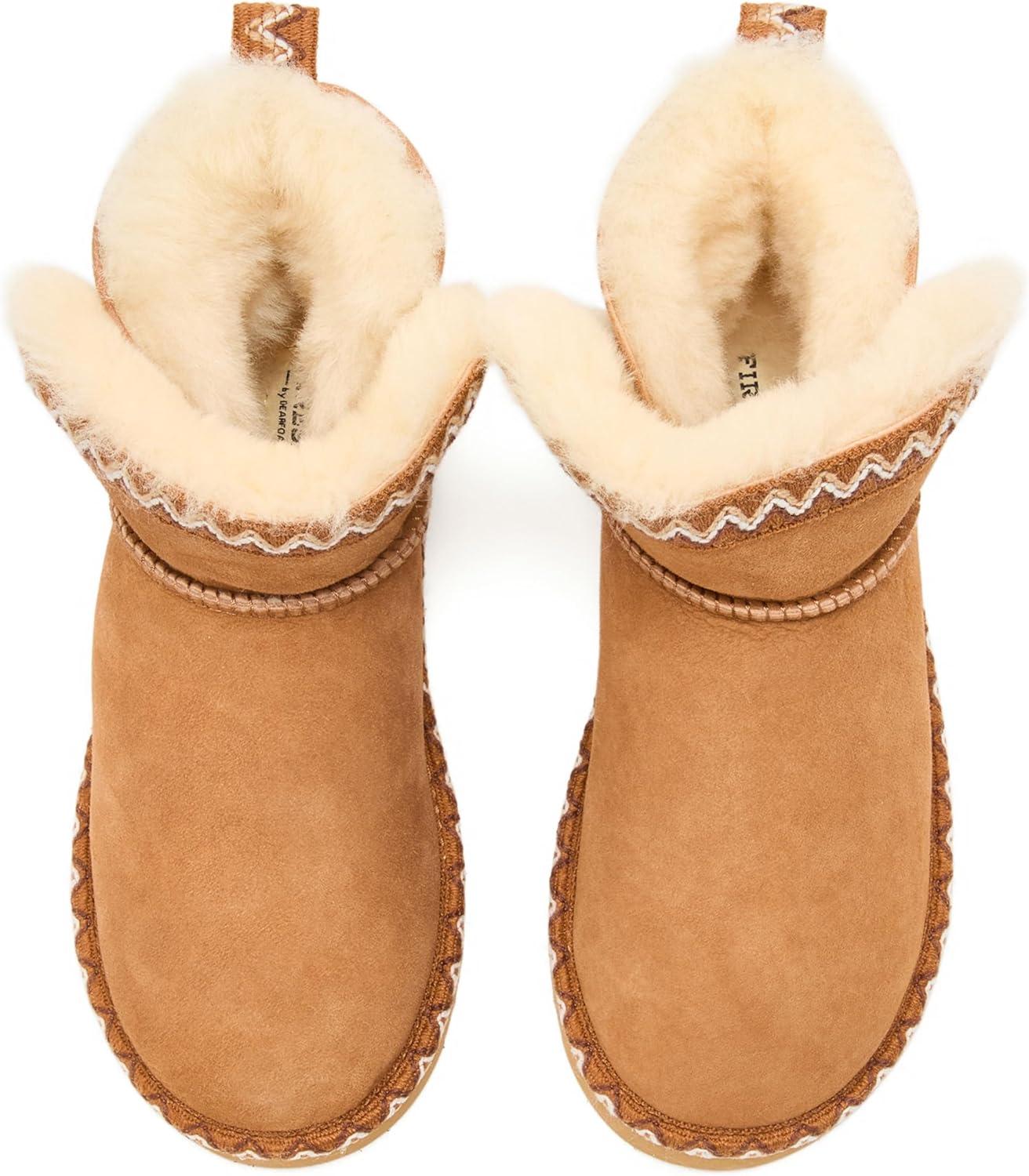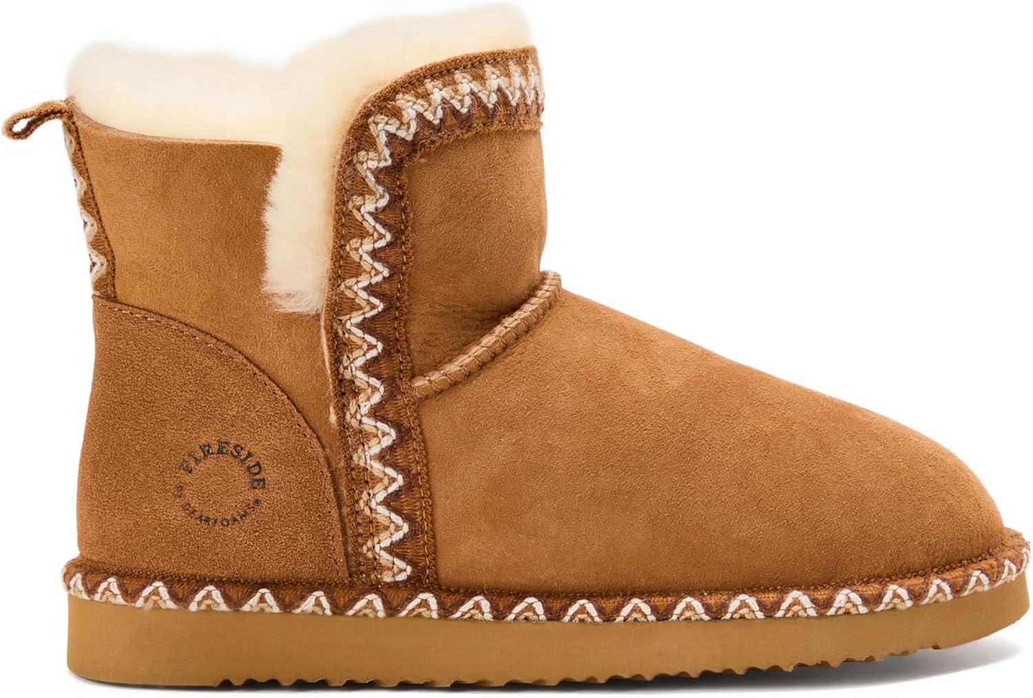 Dearfoams Women’s Fireside Shearling Water Resistant Indoor/Outdoor Foldover Boot Slipper(Chestnut Taping)