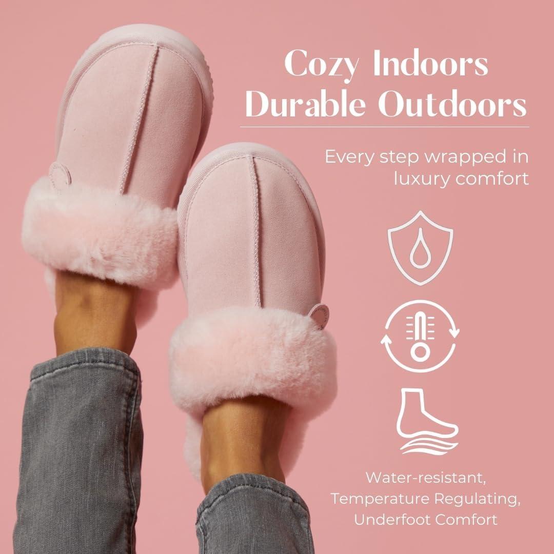 Dearfoams Women’s Fireside Sydney Shearling Fur Slippers (Wide width available)(Pink)