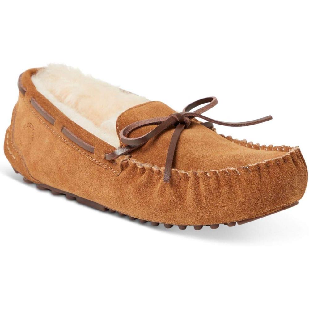 Dearfoams Women’s Fireside Victoria Genuine Shearling Indoor/Outdoor Moccasin With Tie Slippers(Chestnut)