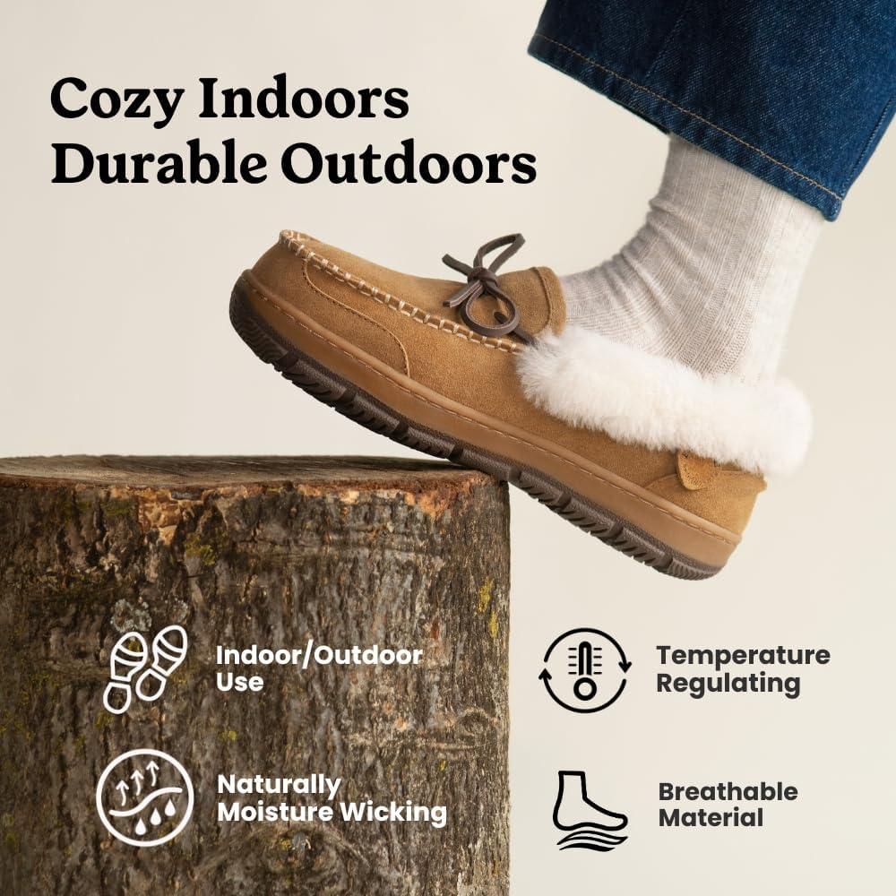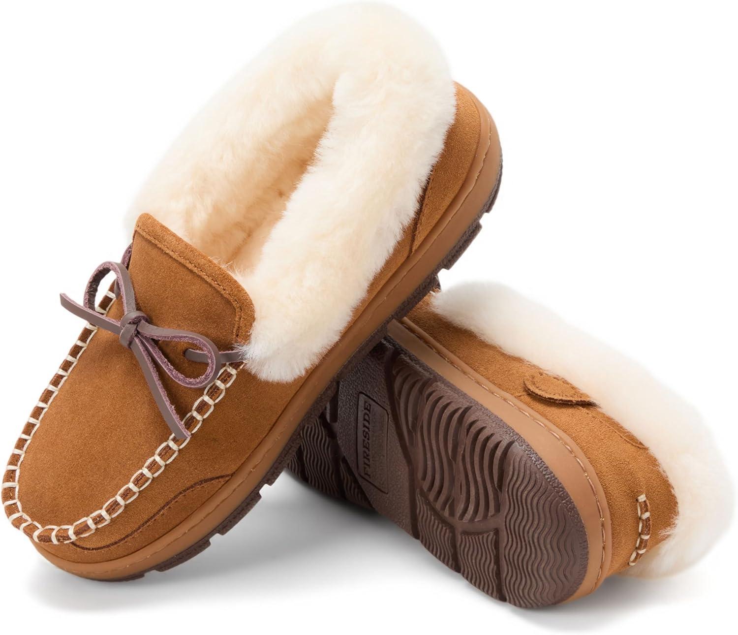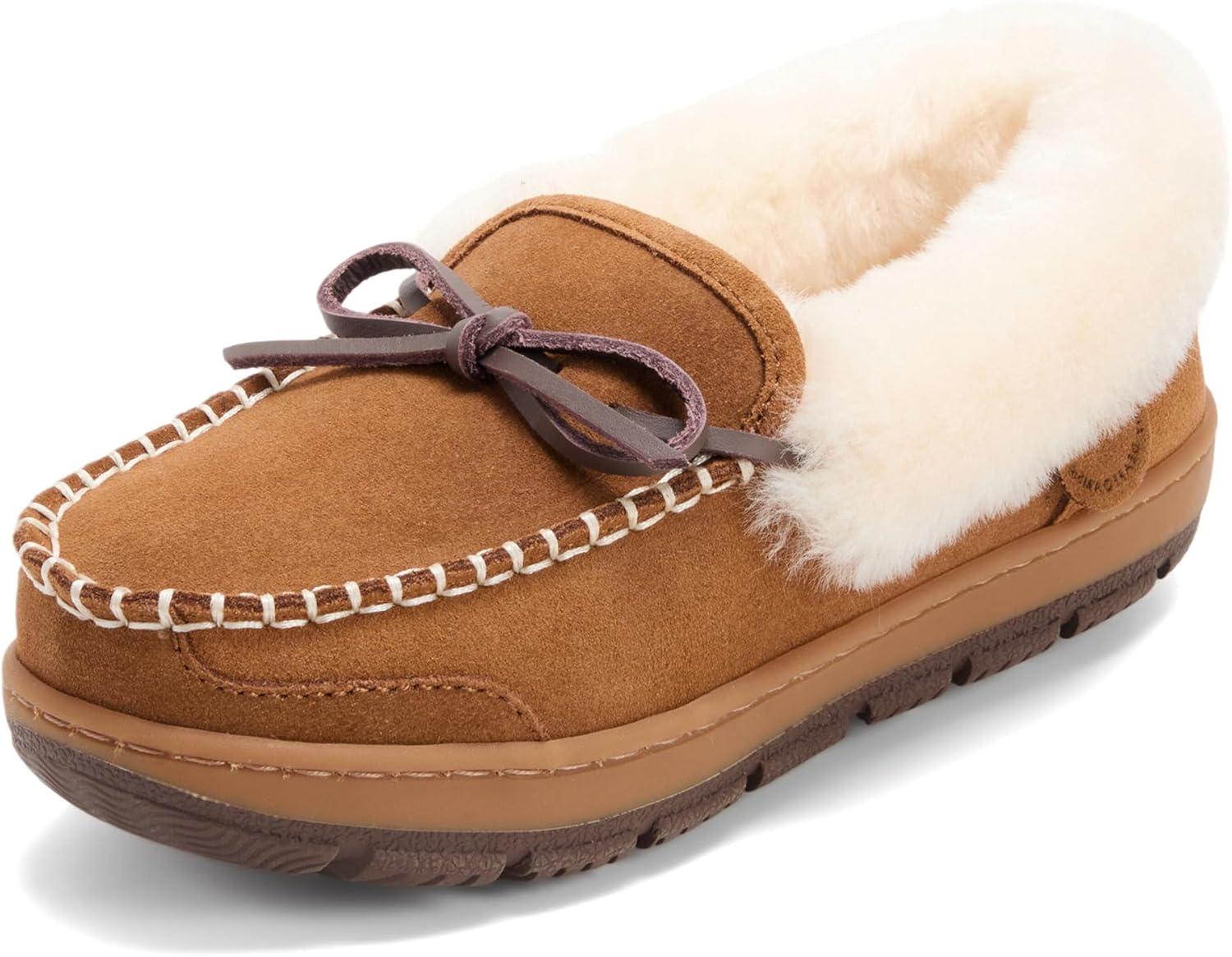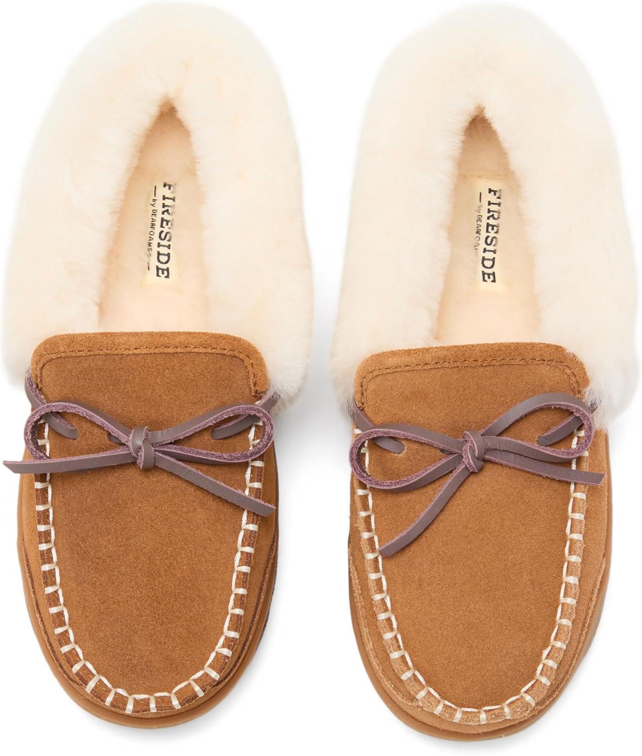 Dearfoams womens Genuine Australian Shearling Moccasin Slipper – Gladstone Indoor Outdoor House Shoe(Chestnut)