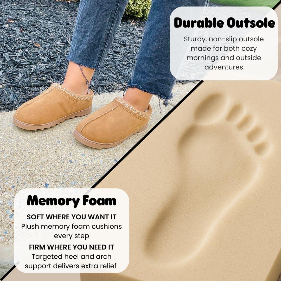 Dearfoams Women’s Genuine Suede Clogs Doreen Memory Foam House Slippers Indoor House Shoes(Chestnut)