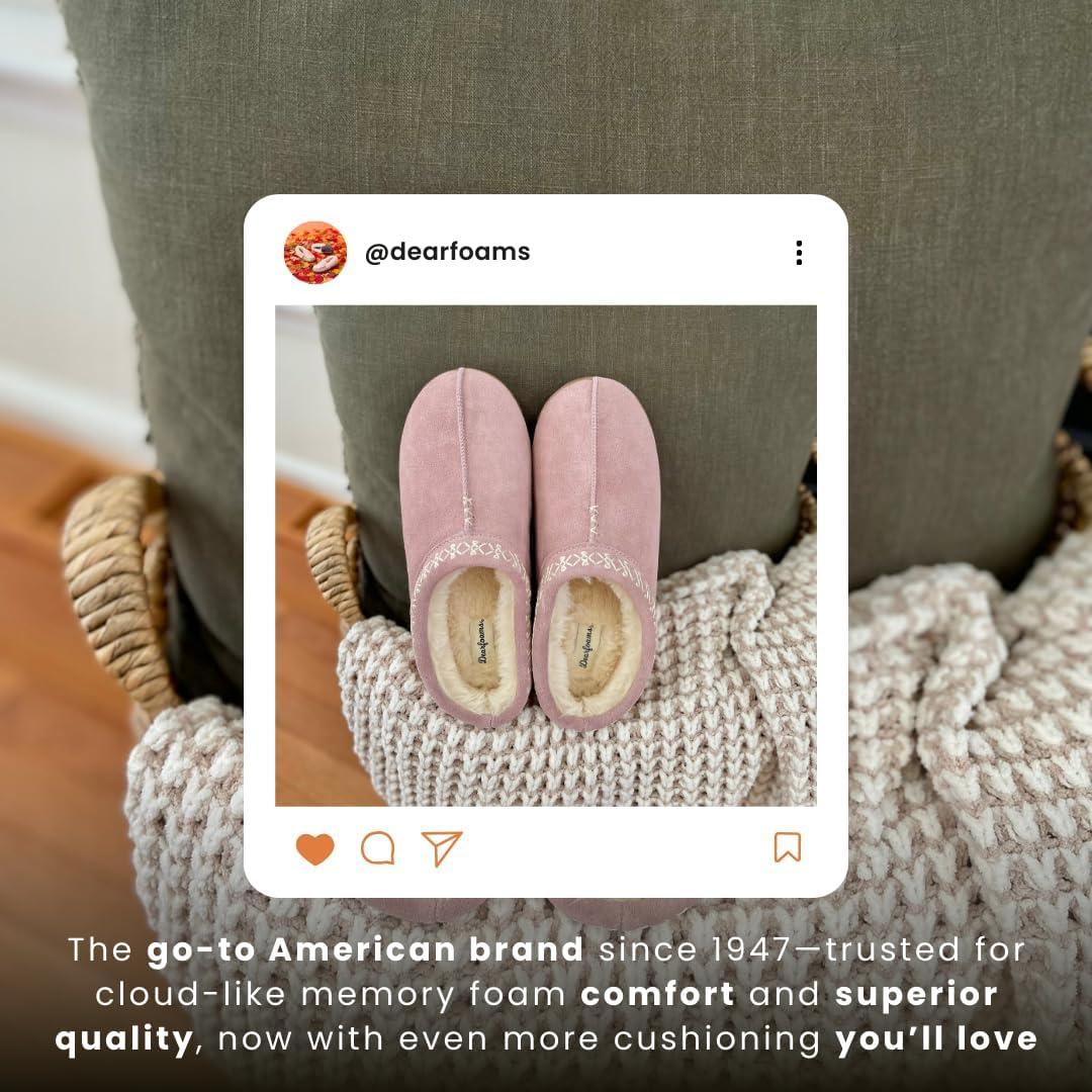 Dearfoams Women’s Genuine Suede Clogs Doreen Memory Foam House Slippers Indoor House Shoes(Dusty Pink)