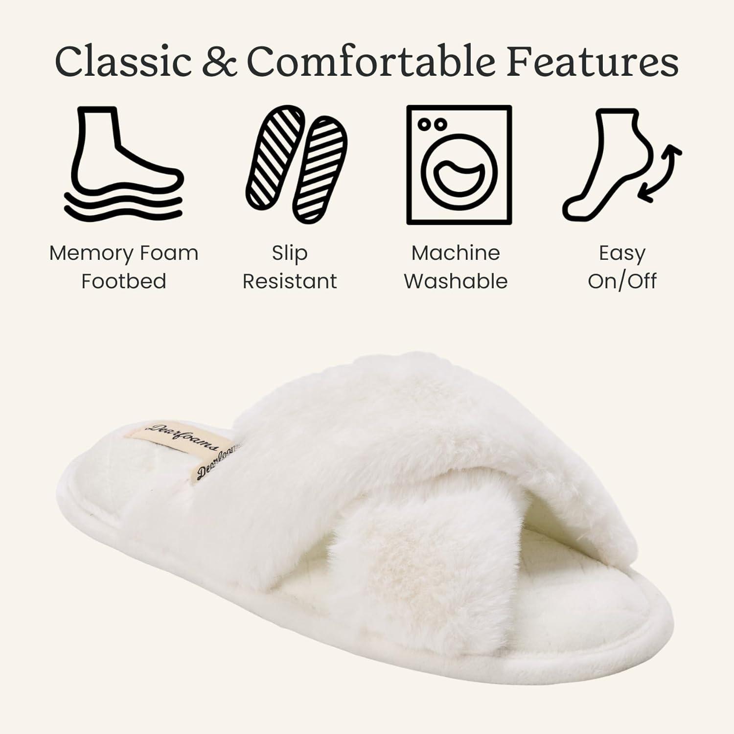 Slip into something that feels as good as it looks. The Dearfoams Furry Cross-Band Slide wraps your feet in plush faux fur that’s irresistibly soft to the touch, with a cross-band design that’s equal parts cozy and chic. Inside, a cushioned memory foam insole molds to your foot for personalized comfort, while DF Adapt tech keeps things cool and breathable. From lazy mornings with coffee to evenings unwinding on the couch, these slippers are made to keep up with your every move. And because comfort doesn’t stop at your front door, the durable indoor/outdoor sole lets you take that cozy feeling with you—whether it’s grabbing the mail, walking the dog, or stepping out to the patio. Available in a range of versatile colors and sizes, they’re the perfect mix of style, comfort, and all-day wearability.
