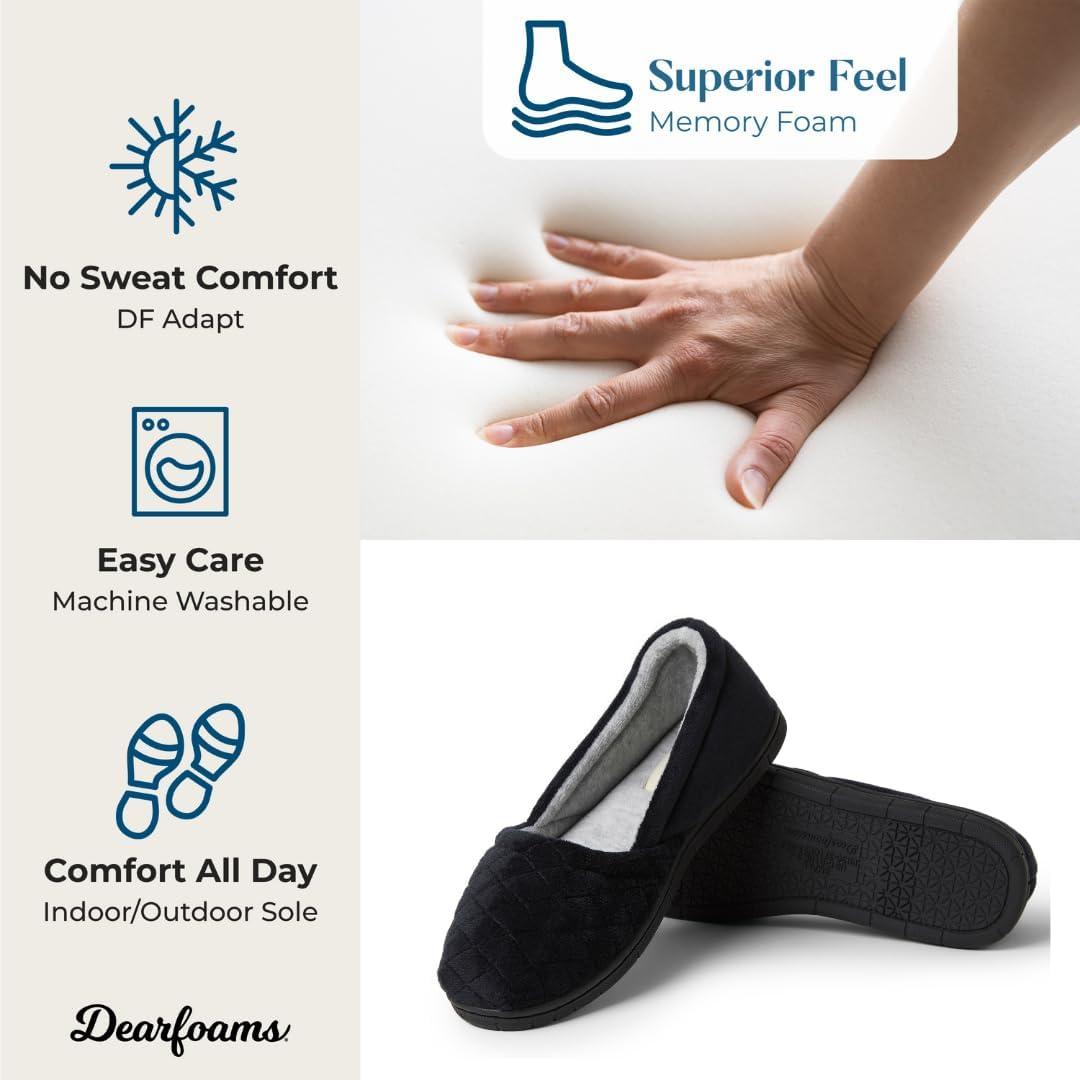 Start your morning off right by sliding into a pair of Dearfoams. With a rubber sole, our velour slippers can be worn indoors while getting ready for the day or outside if you need to grab the mail or walk the dog. A closed back creates a secure feel around the foot, while a quilted design adds an elegant touch. Plus, Dearfoams velour slippers are designed with a multi-density cushioned insole with memory foam for instant comfort. Cleaning them is easy — simply machine wash in cold water and lay flat to dry.