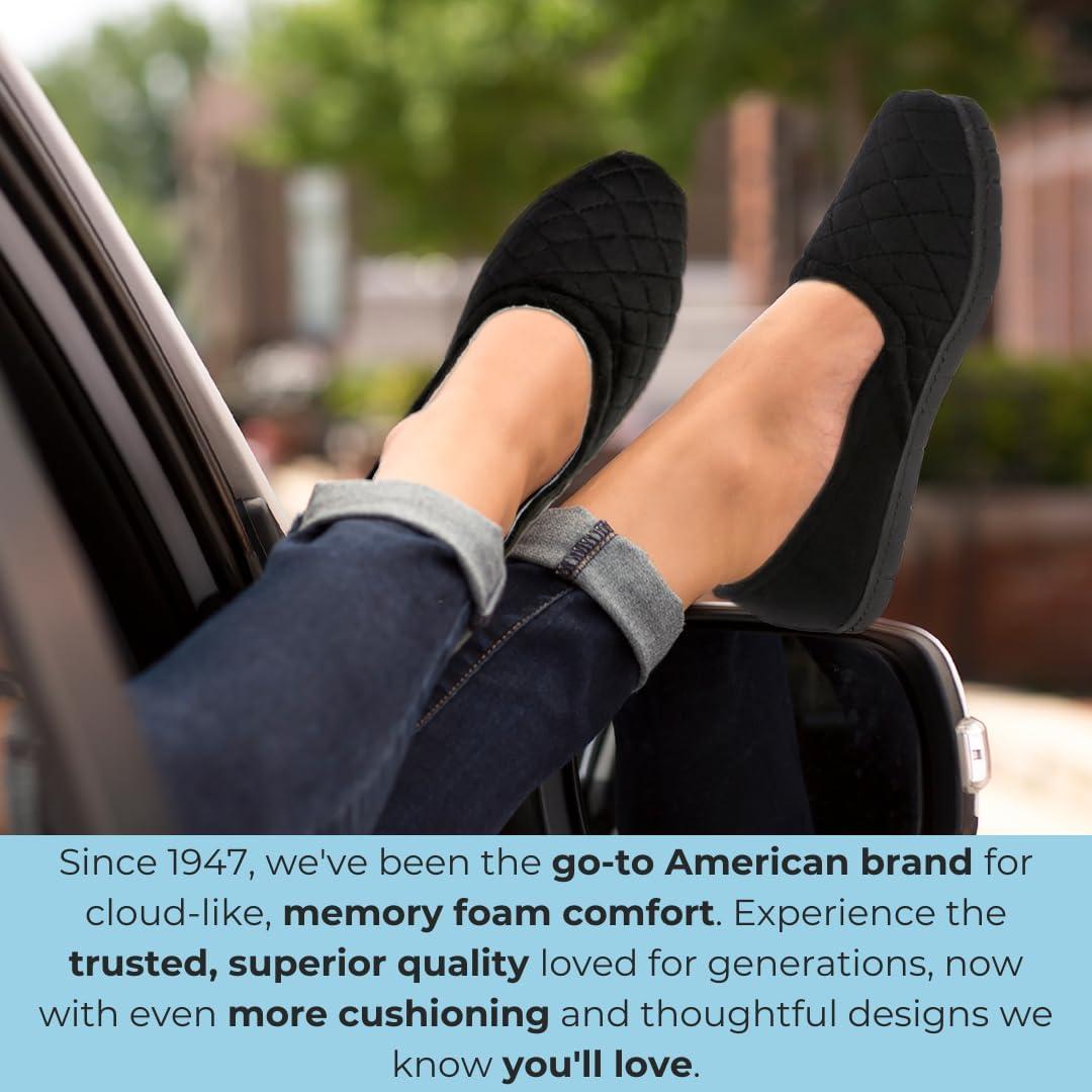 Dearfoams Women’s Katie Velour Secure-fit Closed Back Memory Foam Comfort Slip on Loafer with Rubber Sole Slipper(Starry Night Navy)